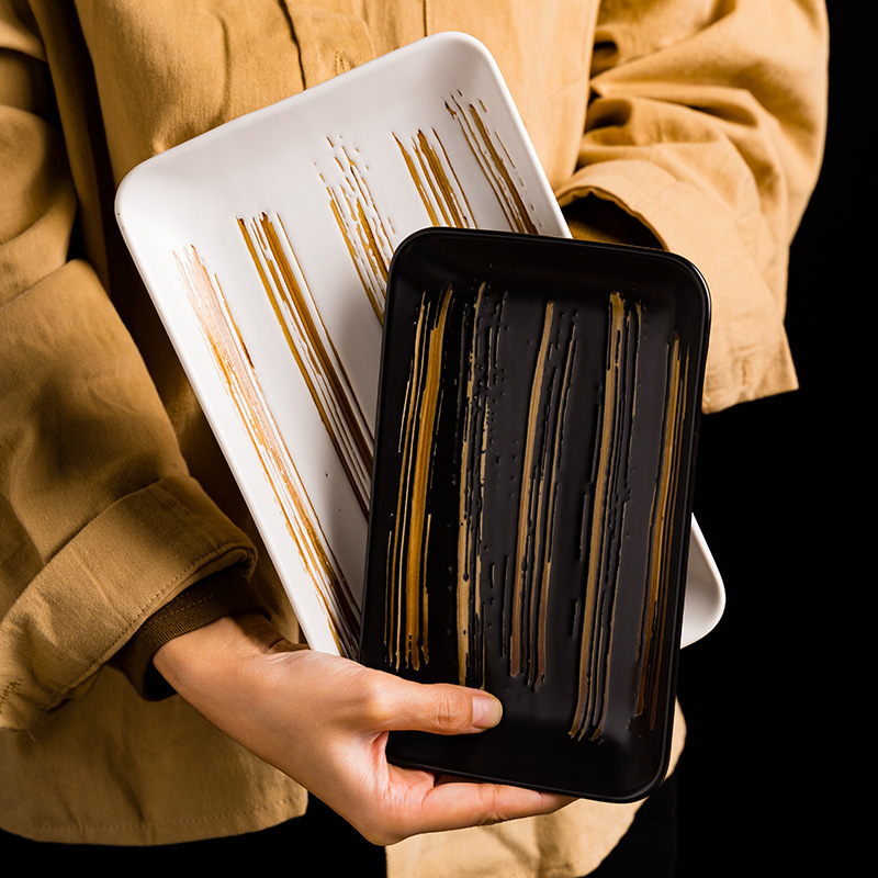japanese style hotel tableware rectangular plate restaurant barbecue plate ceramic tray cake plate plate dish