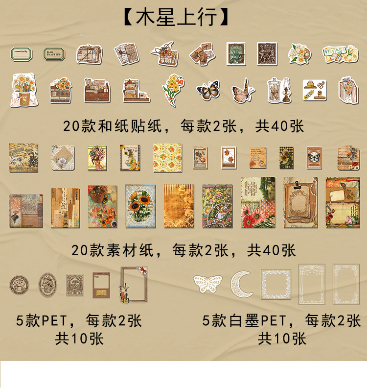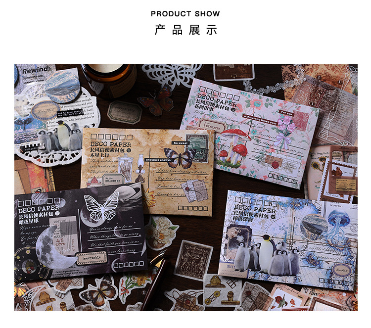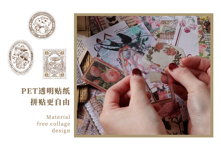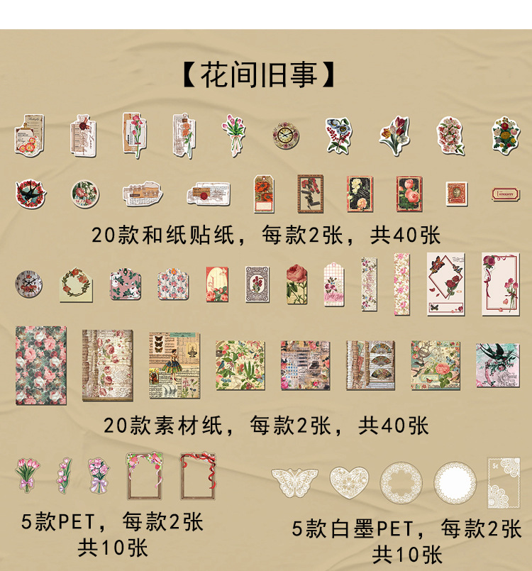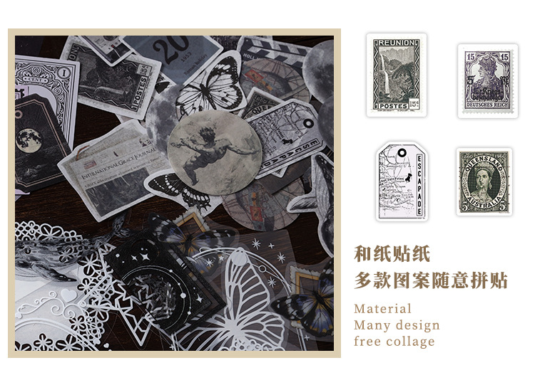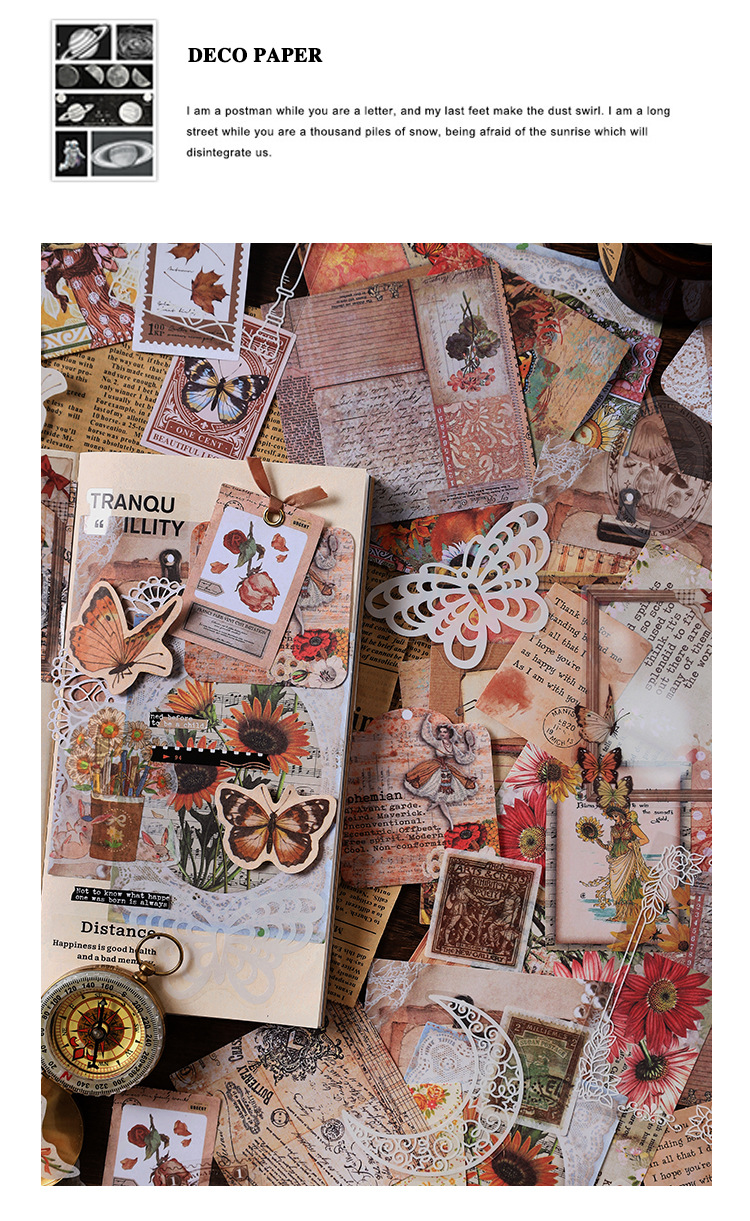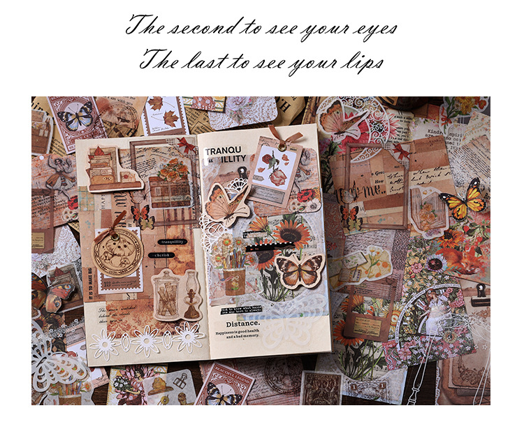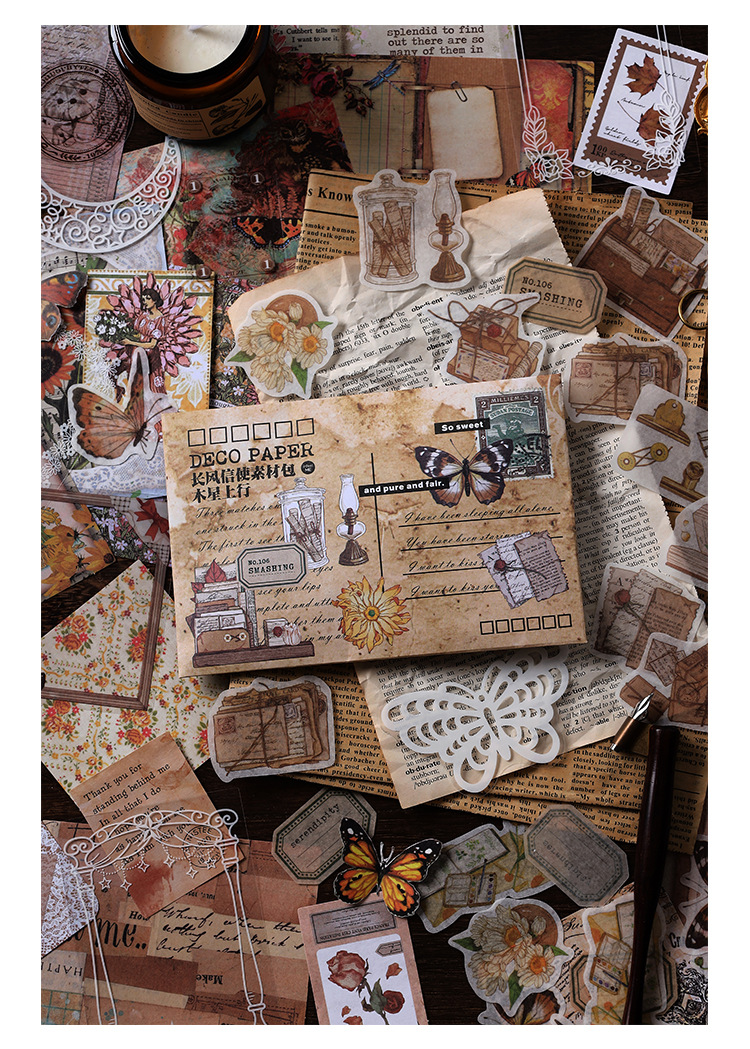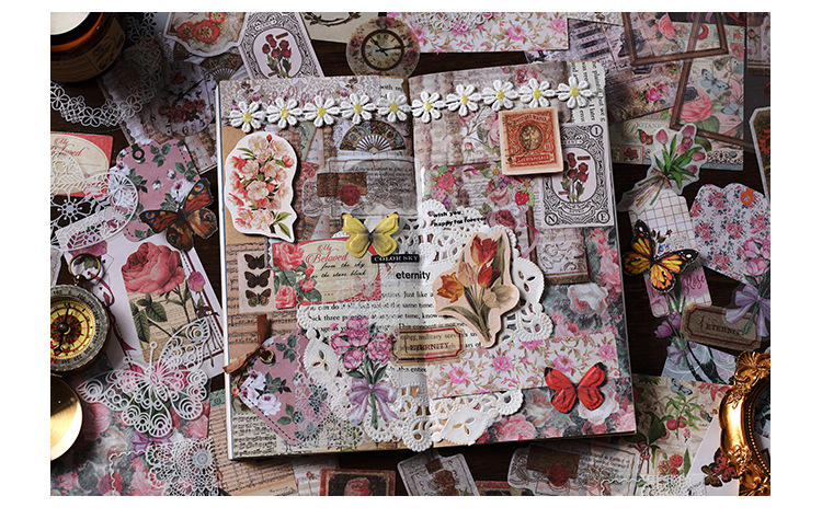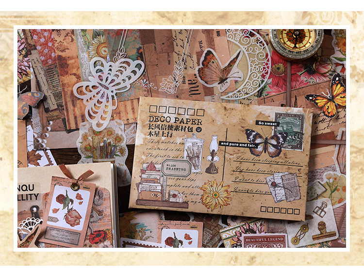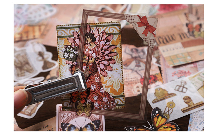 Material Bag Long Style Messenger Series Vintage Butterfly Plant Flower Hand Account Stickers Material 4