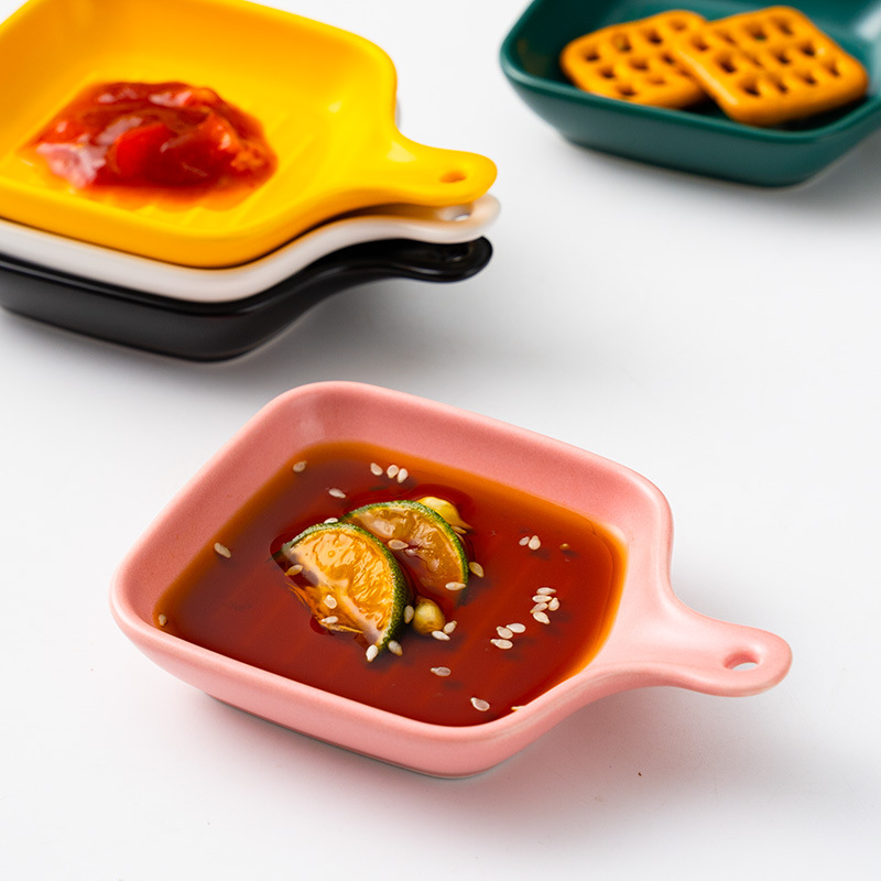 hotel supplies ceramic matte square handle 4-inch sauce dish mini handle sauce dish foreign trade