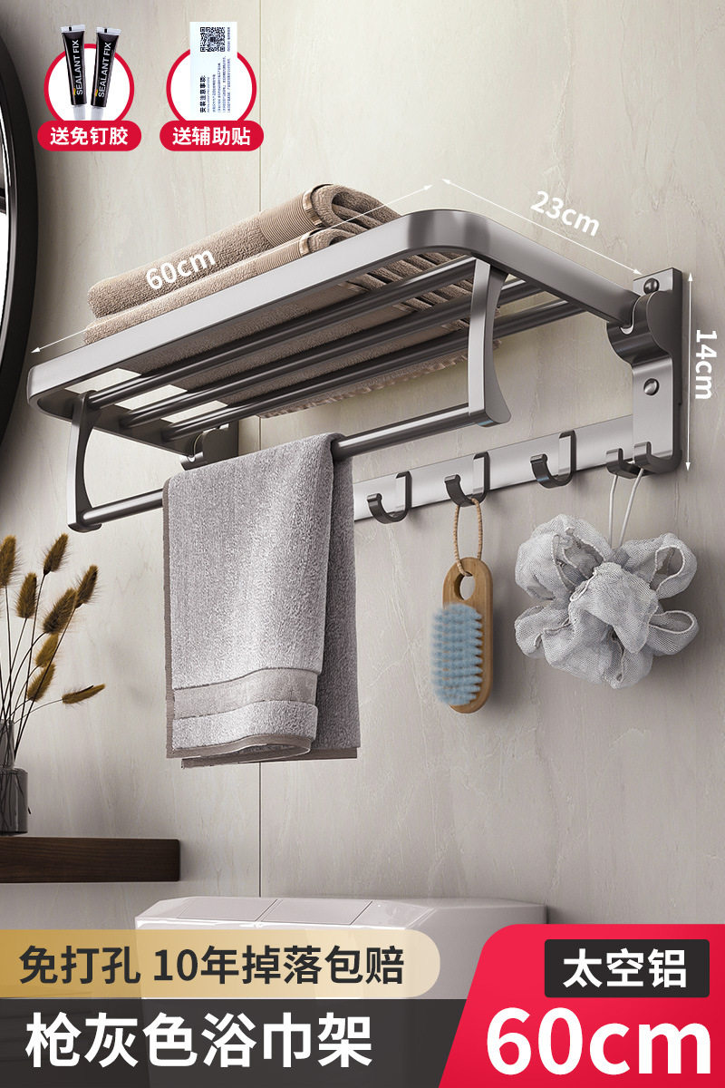gun gray towel rack punch-free bathroom storage rack integrated wall hanging toilet bath towel rack