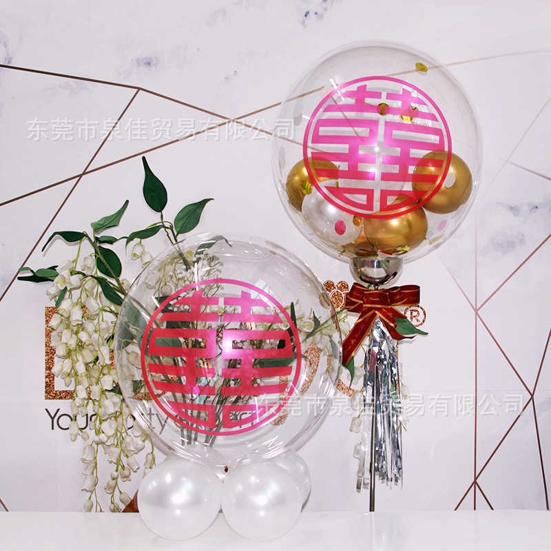 Letter Printed Transparent Bounce Ball Wholesale RED DOUBLE HAPPINESS Balloon Party Wedding Ceremony Wedding Room Layout Birthday Decoration