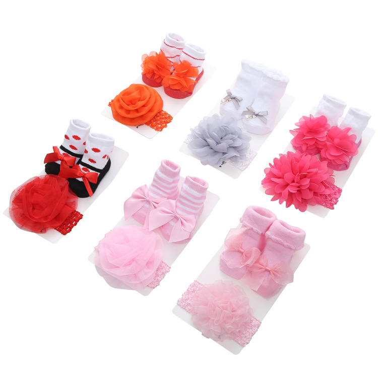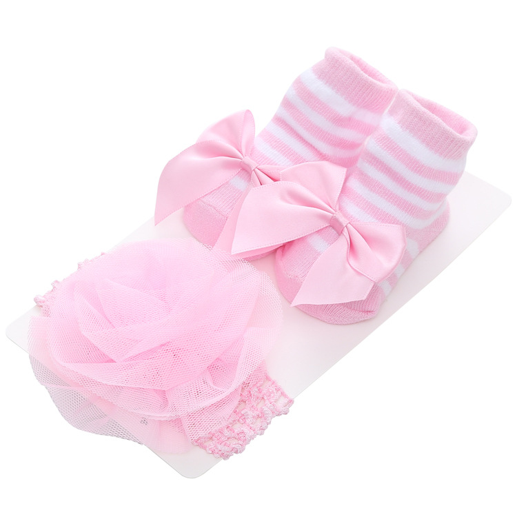 new striped solid color lace european and american baby socks bow princess cute baby socks hair band set