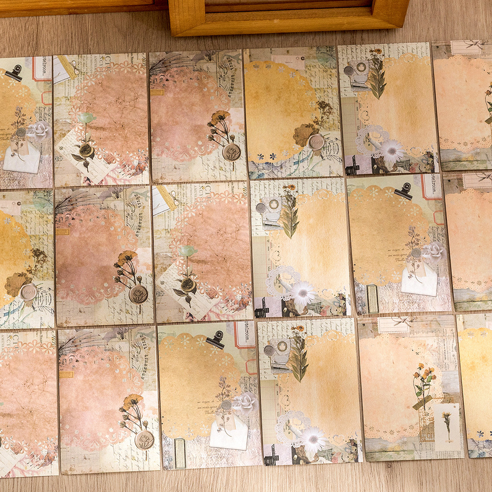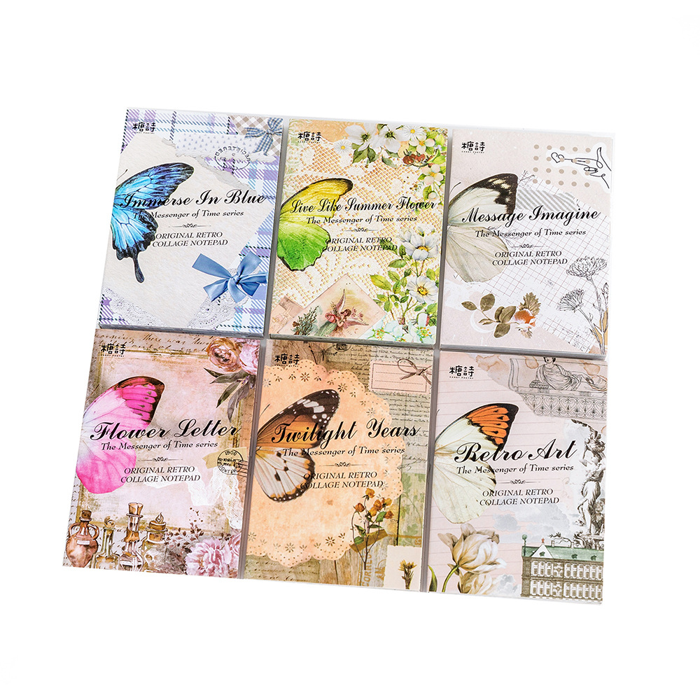 Memo Pad Years Messenger Series Vintage Old Objects Collage Fresh Plaid Flower Decoration Message Material