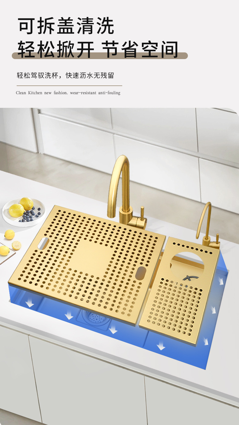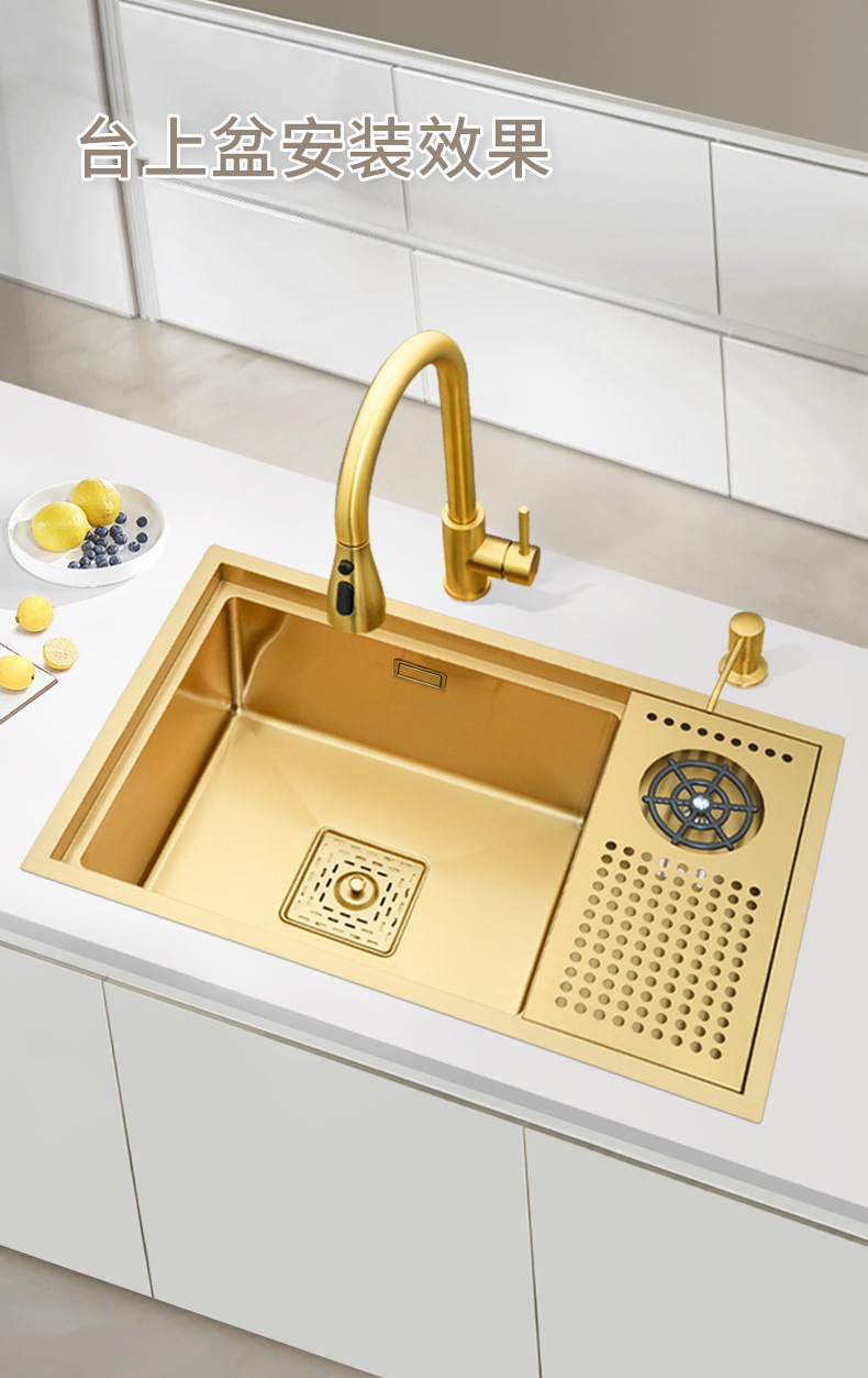 Golden 304 Stainless Steel Single Sink Middle Island Counter Bar Cup Cleaner Small Water Channel Drop-in Sink Pool Kitchen Vegetable Basin