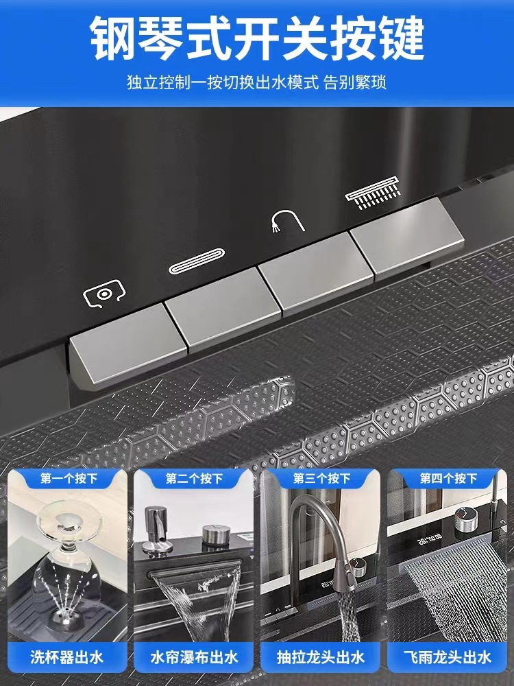 Whale Digital Display Flying Rain Waterfall Sink Nano Gun Gray Large Single Sink Kitchen 304 Stainless Steel Sink Vegetable Basin