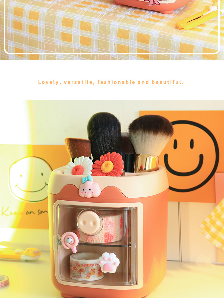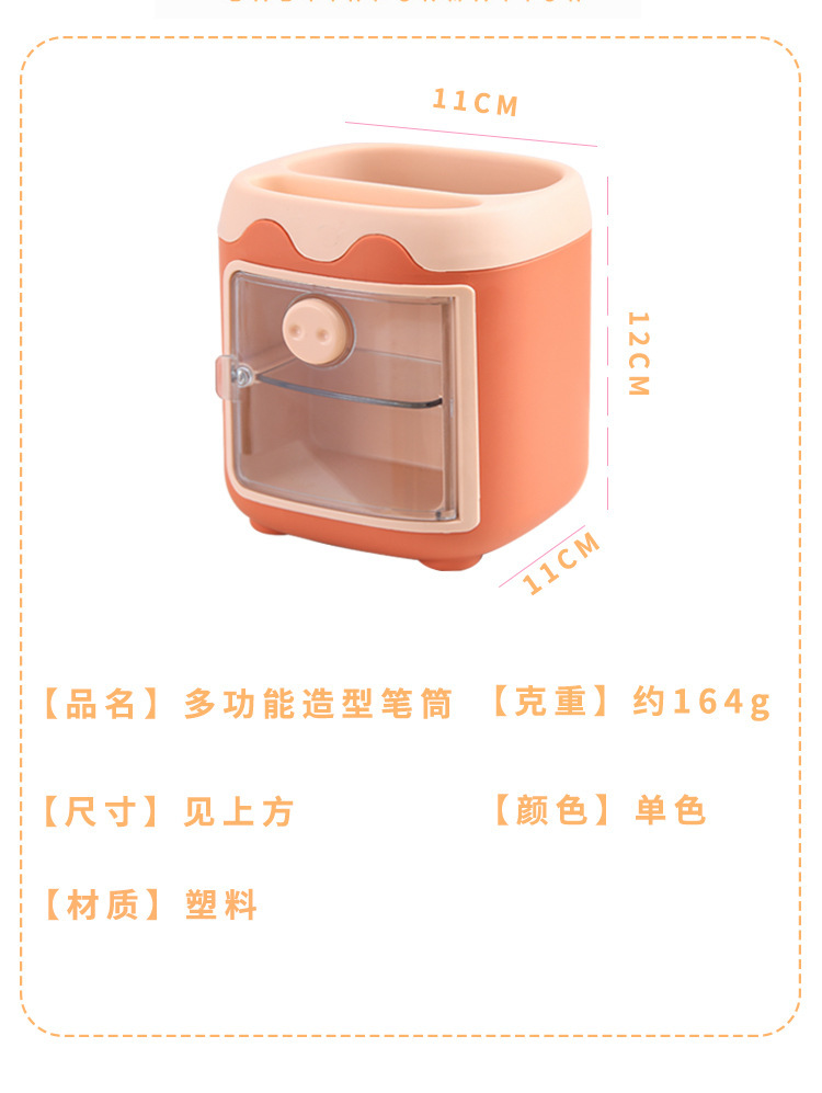 Cute Pig Pen Holder Cartoon Diy Stickers Multifunctional with Storage Grid Student Girl Heart Desktop Stationery Finishing