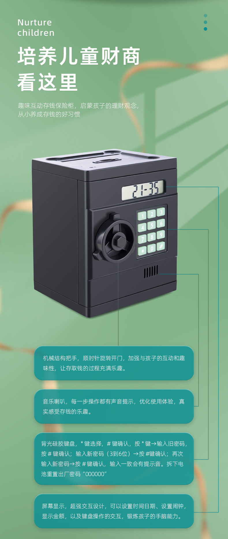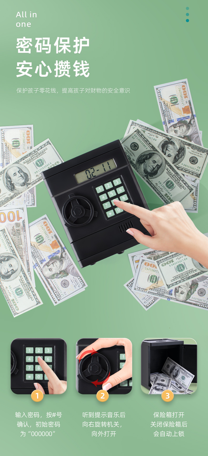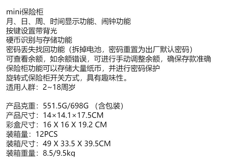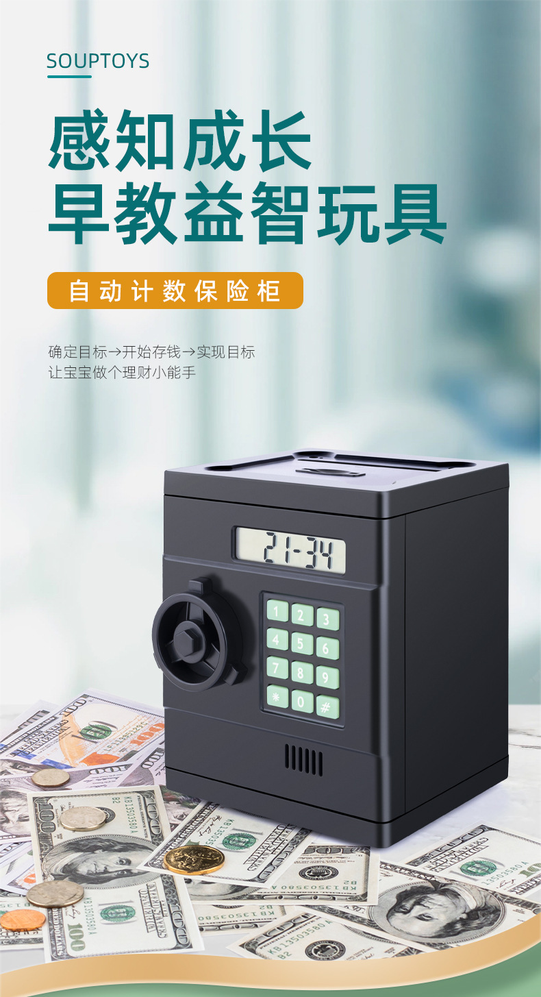 2023 Upgraded Mini Safe Children Saving Pot Automatic Counting Smart Storage Tank Safe Toy