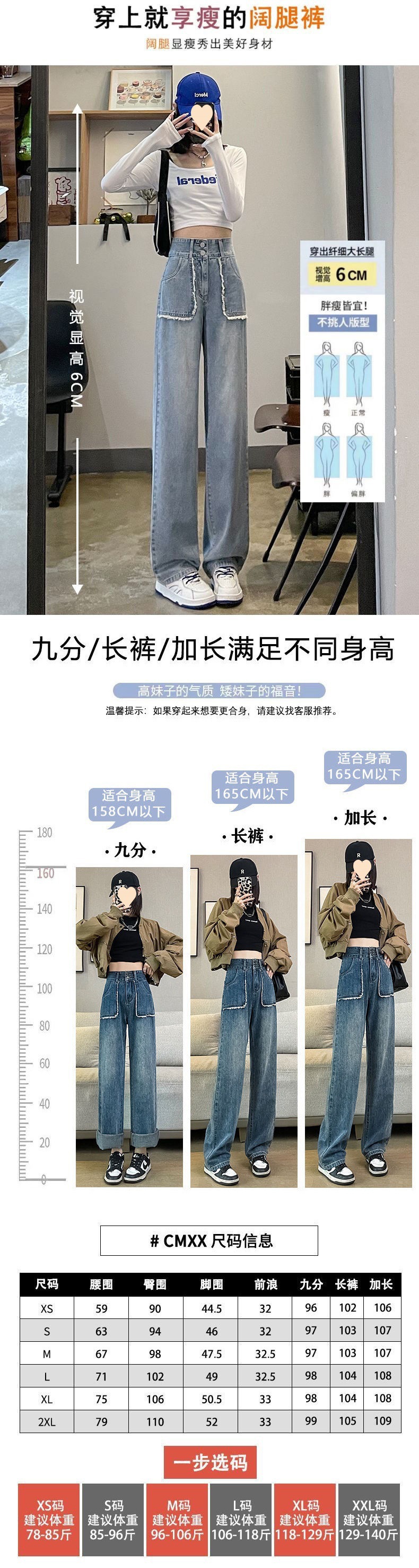 retro blue cropped pants a215-9: size xxl recommend 68.00 kg-75.00 kg