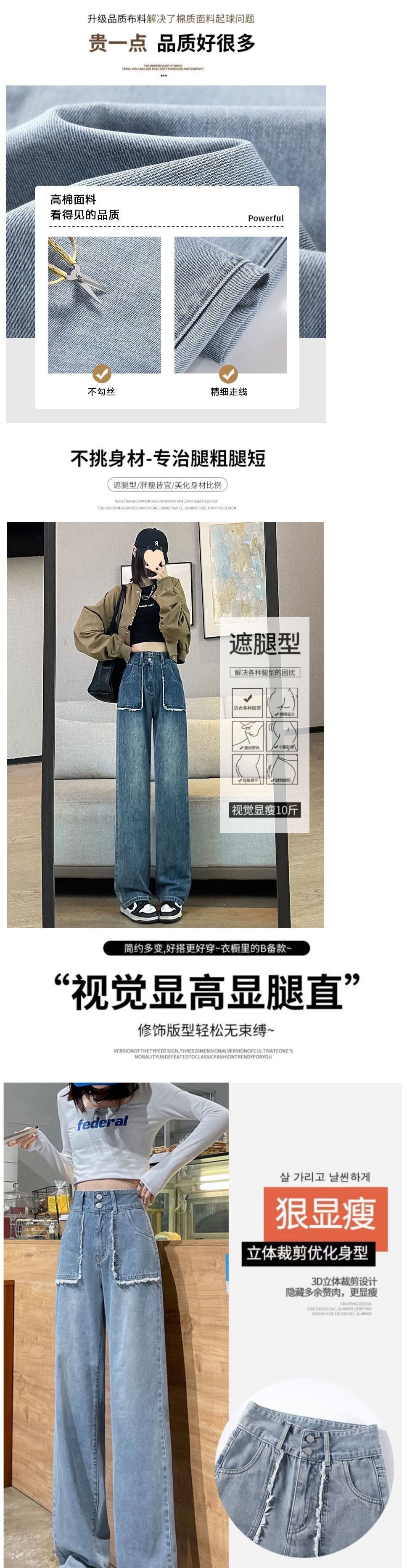 retro blue cropped pants a215-9: size m recommend 49.00 kg-55.00 kg
