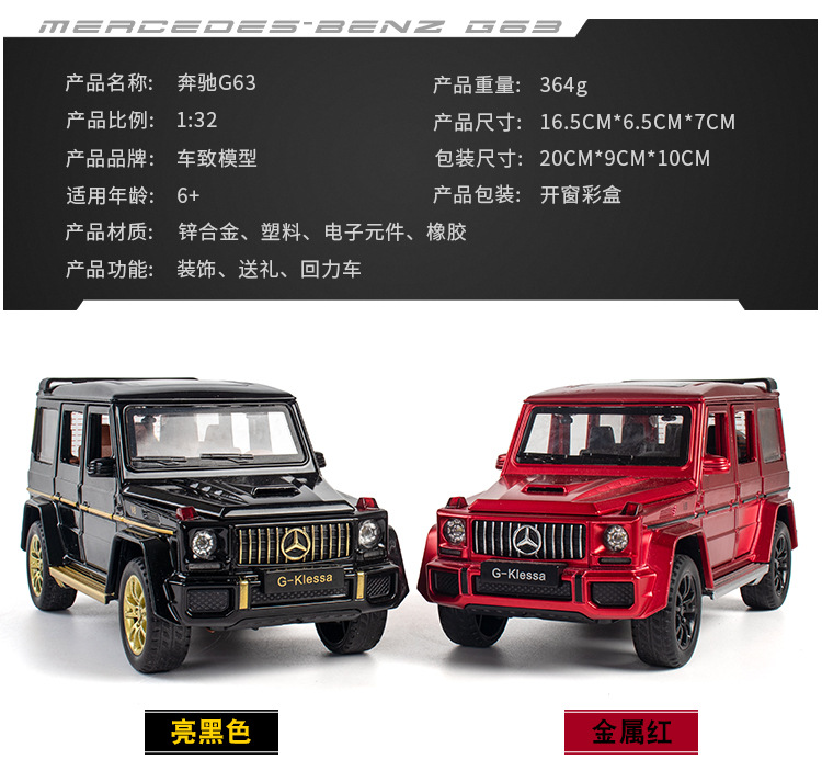 1:32 Simulation Mercedes-Benz G63 Alloy Car Model Children's off-Road Car Multiple Trapdoors Warrior Gift Collection