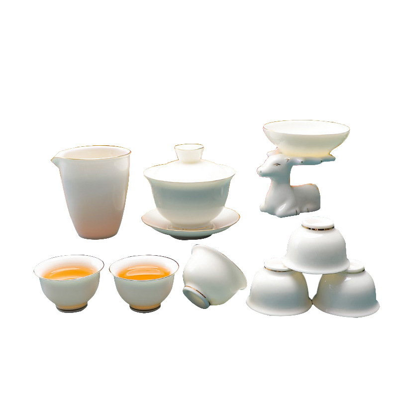 safe packaging-white jade ruchu gaiwan set-elk-incense cup-gold