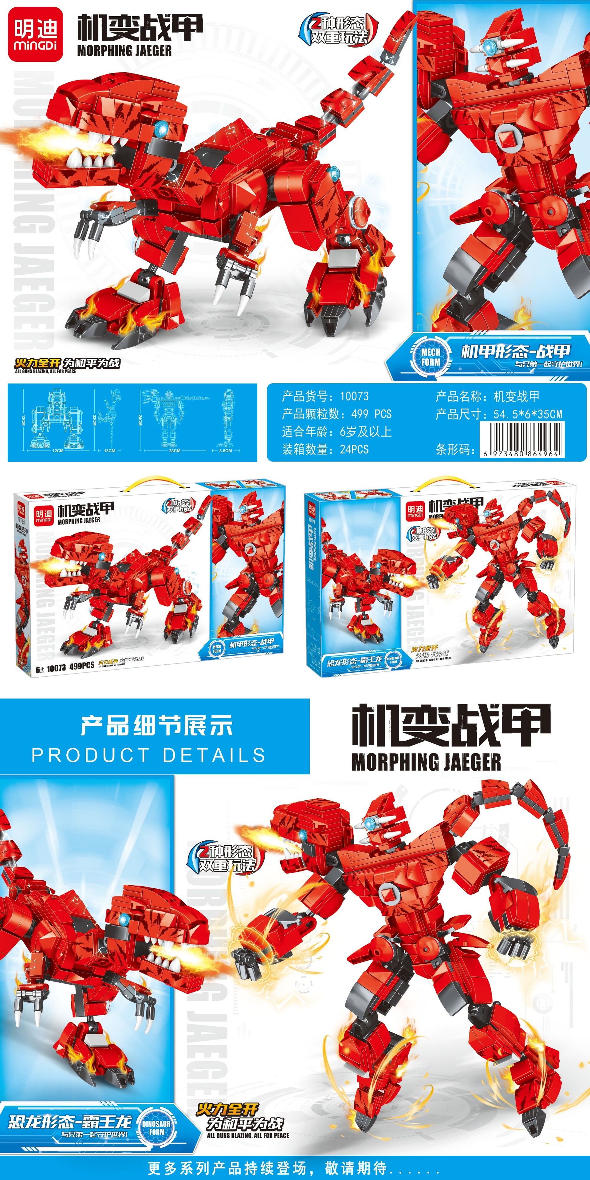 10073 tyrannosaurus rex-mech war (499pcs)