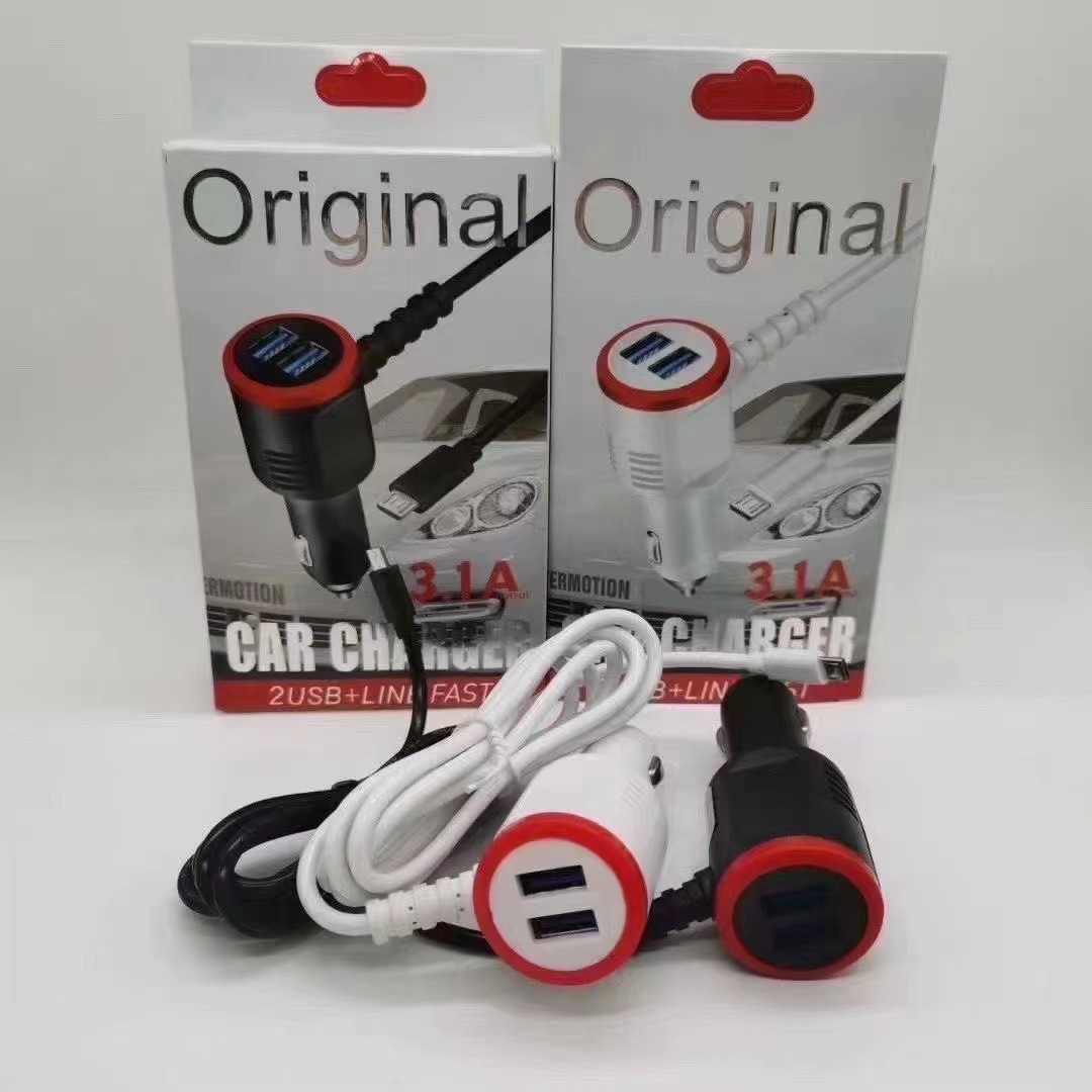 Car Charger Dual Usb3.1a Android Charging Cable Cigarette Lighter Plug with Android Data Cable Fast Charging