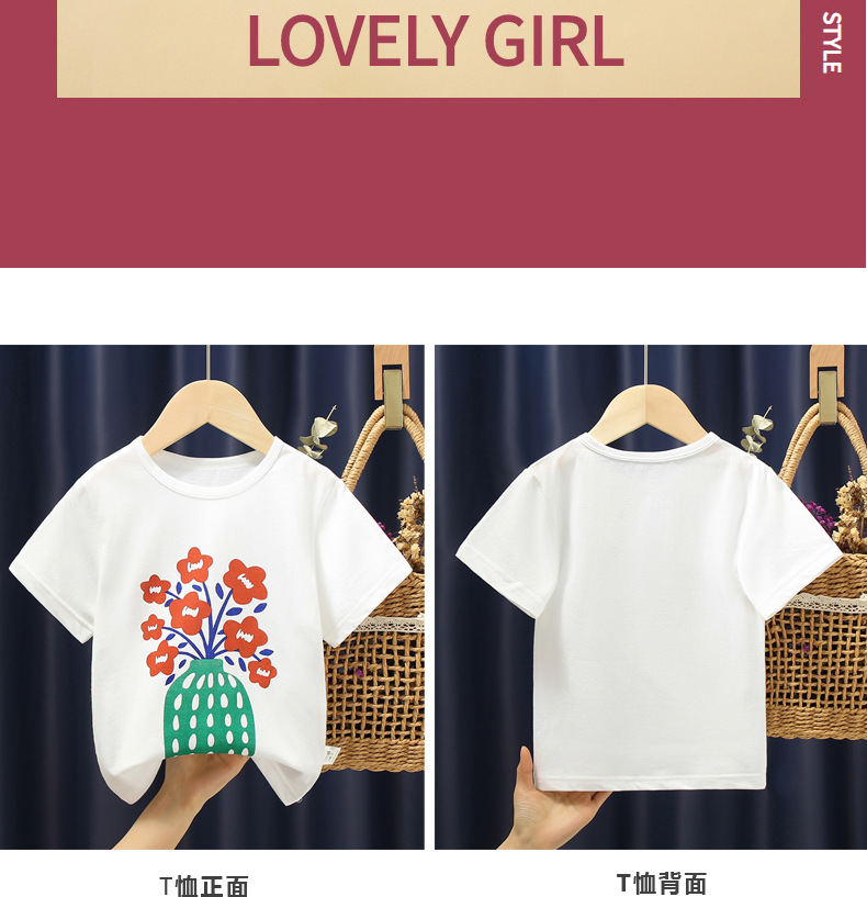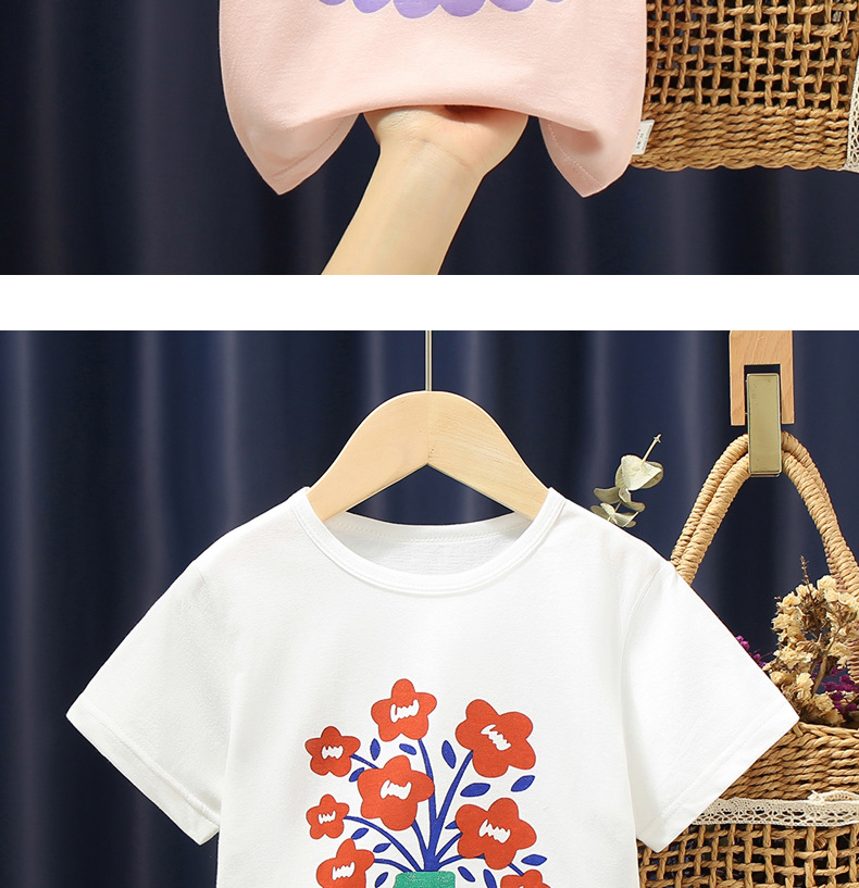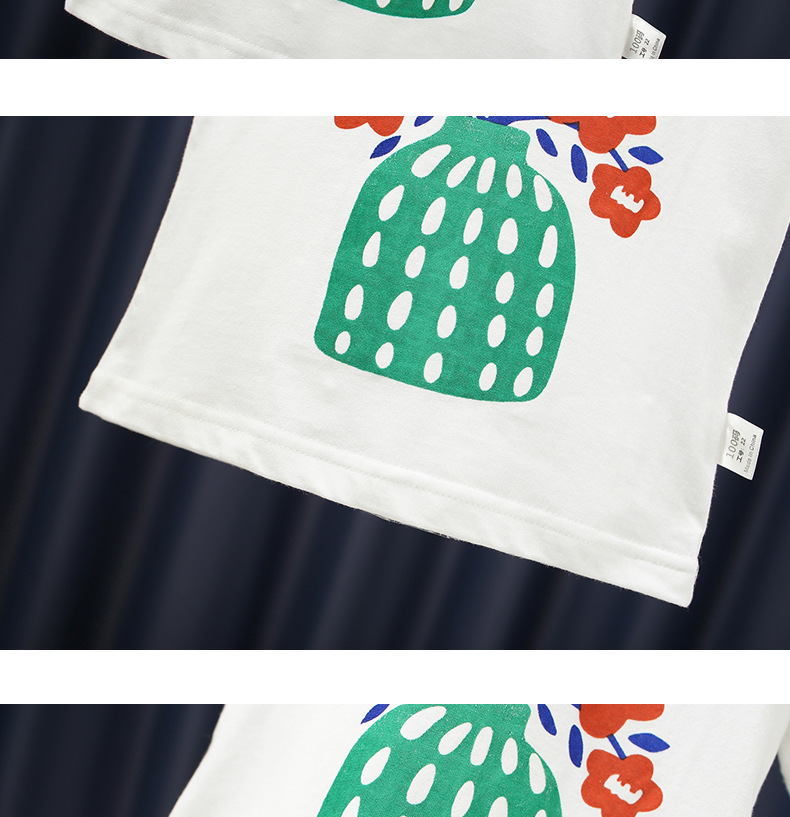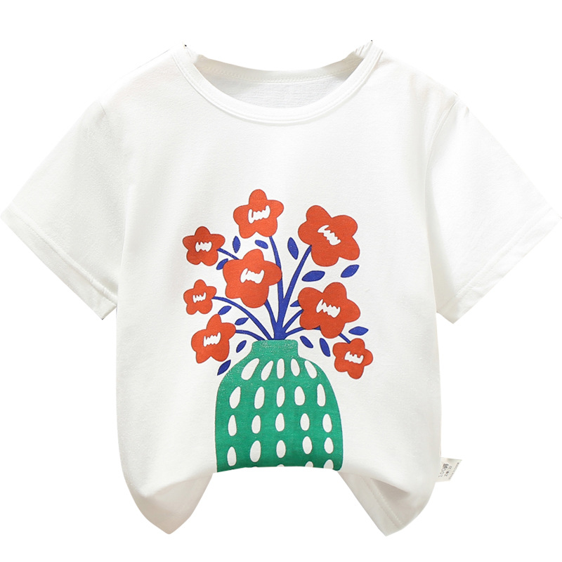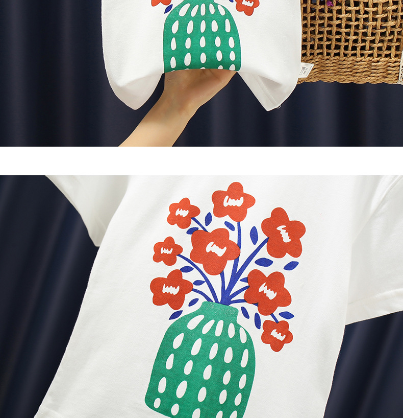 white background with red flowers t-shirt: 100cm