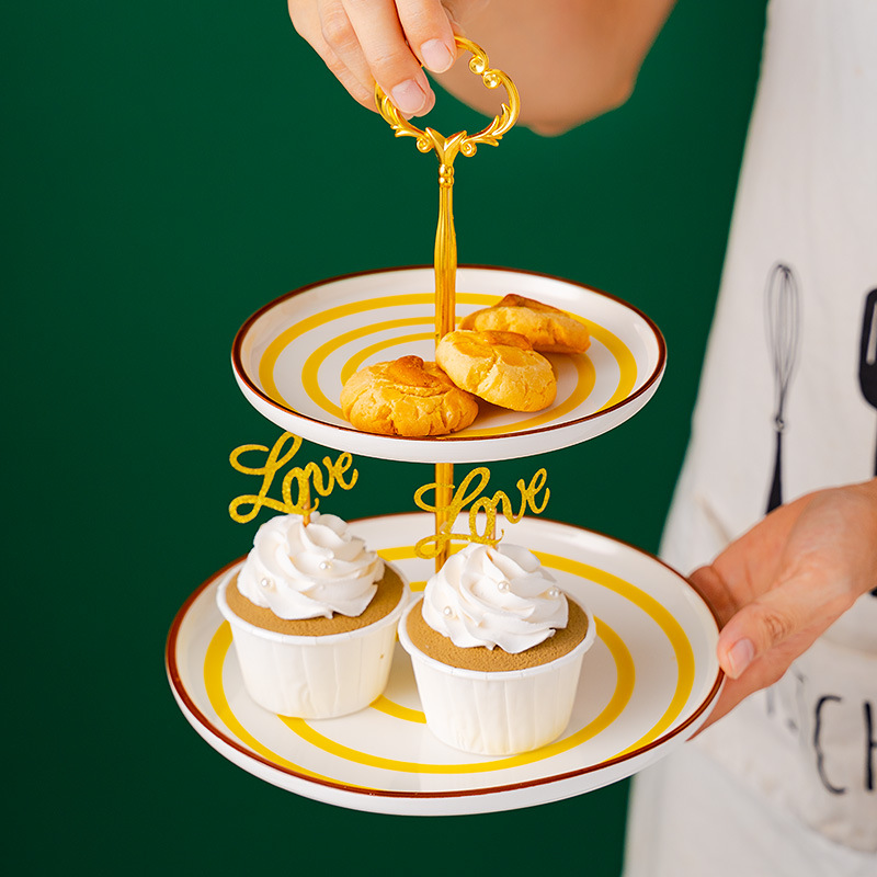 hotel supplies hand color ceramic multi-layer string disk wedding banquet painted three-layer pizza plate party stand