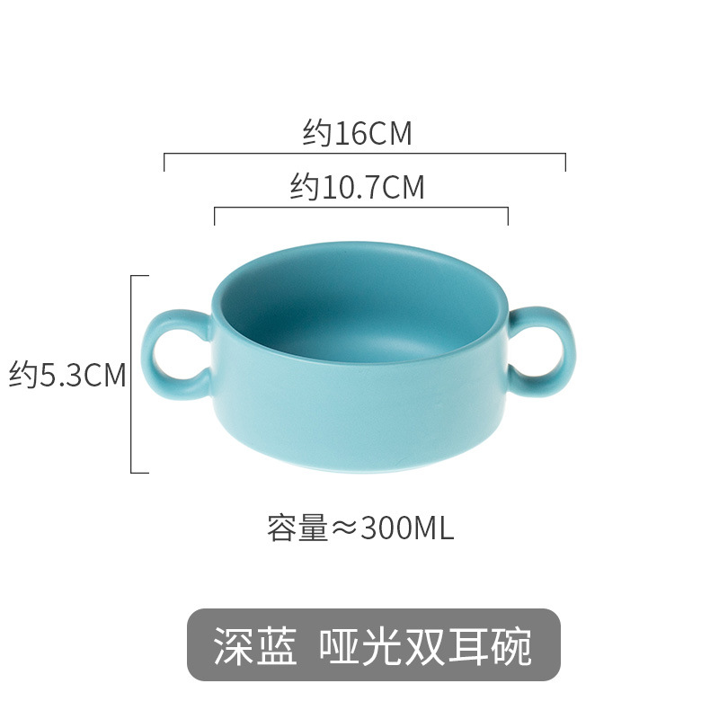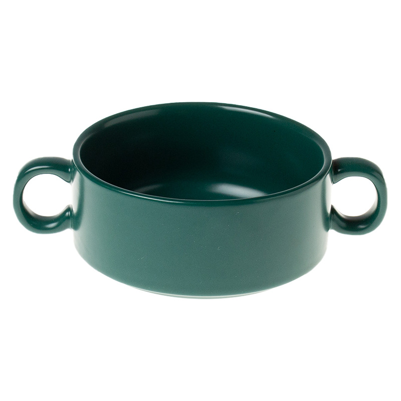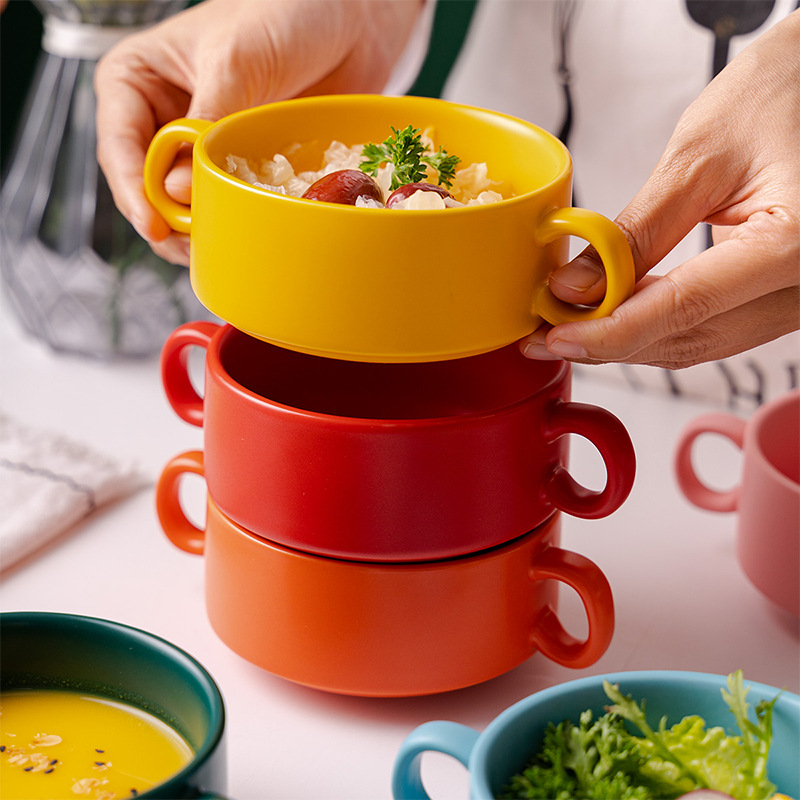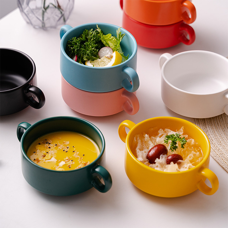 nordic ceramic steamed egg custard double-ear bowl hotel supplies with handle breakfast bowl slow cooker foreign trade