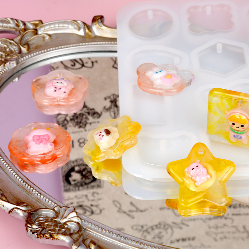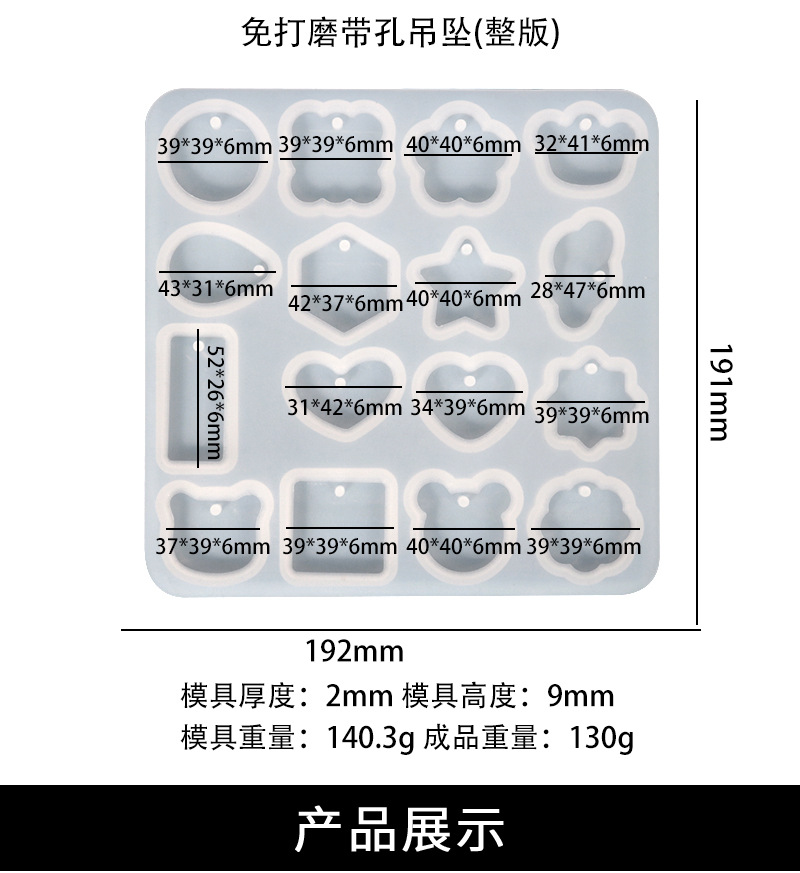 DIY Grinding-Free Full-Version Pendant Epoxy Mold round Corner Keychain Silicone Mold Exclusive for Cross-Border