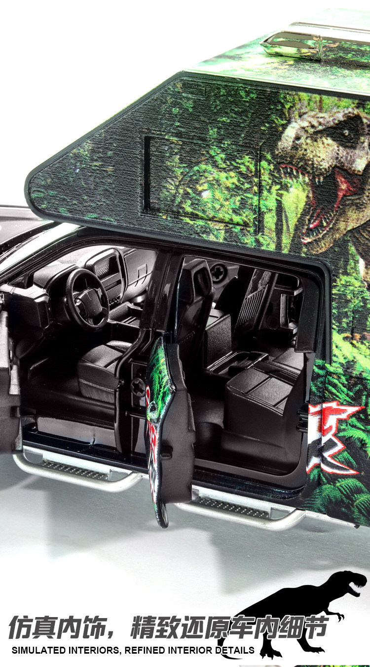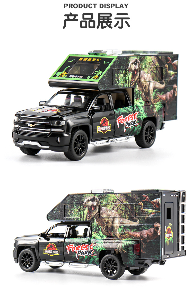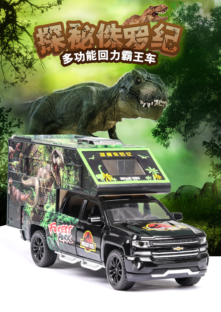 Jurassic Dinosaur Model Decoration Simulation Pull Back Alloy Toy Car RV Chevrolet Sorode Pickup Truck