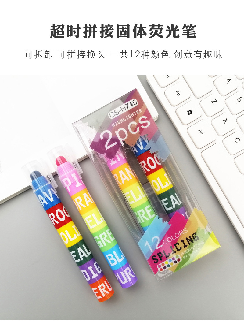 Timeout Creative Fun Can Be Spliced Solid Fluorescent Pen 12 Color Retro Converter Mark Key Pen Color Crayon