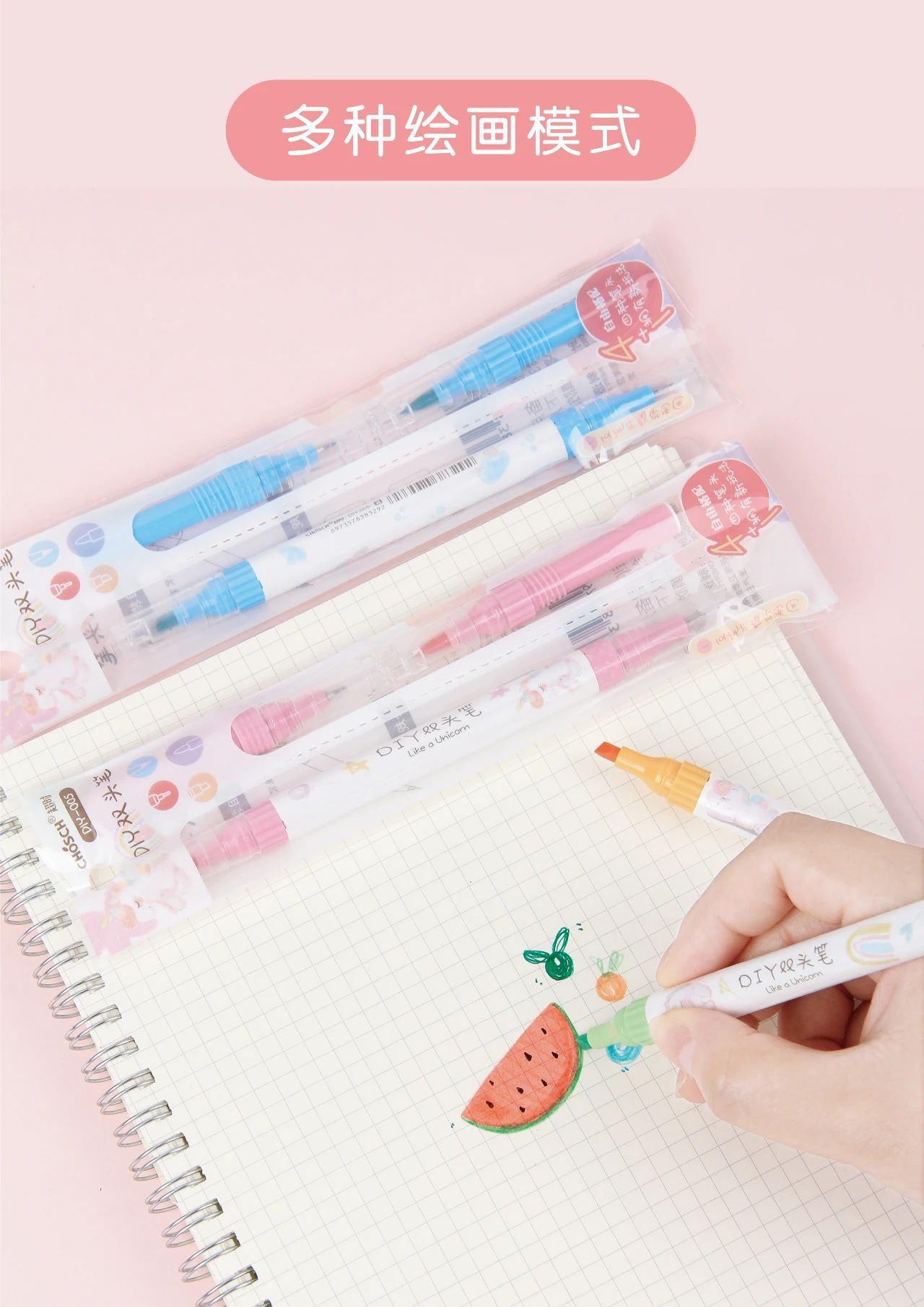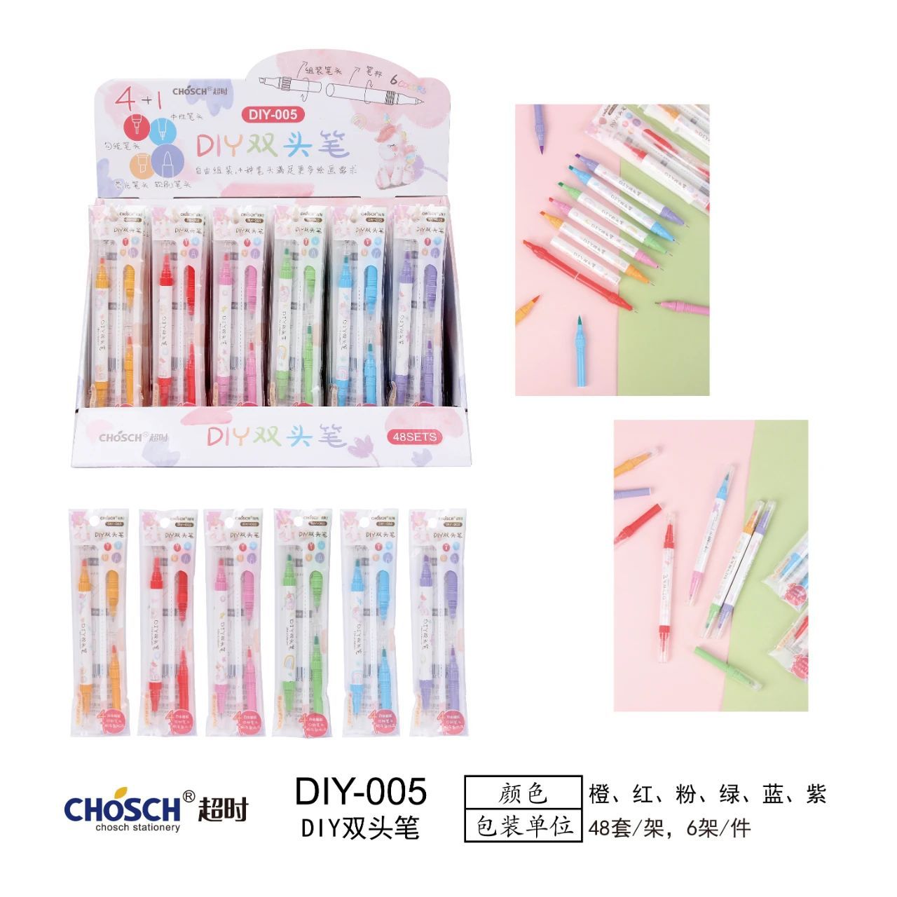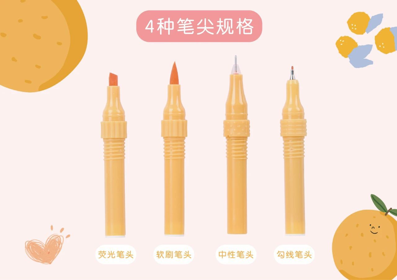 Timeout DIY-005 Combination Creative Double-Headed Color Fluorescent Pen Drawing Pen Marking Key Four Kinds of Pen Head