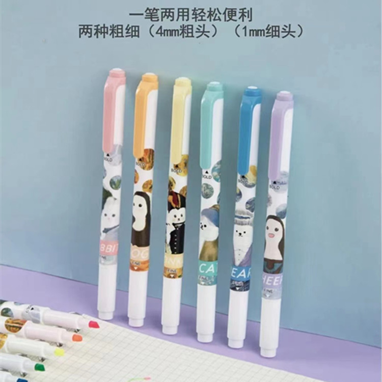 Timeout H792 Double-Headed Fluorescent Pen Key Mark Scribing Highlighter Graffiti Hand Account Pen Thickness Two-Headed Fluorescent Pen