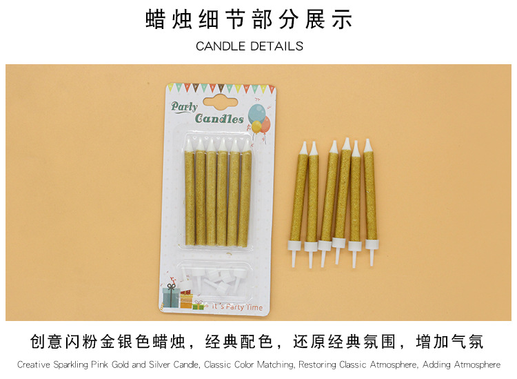 birthday party decoration candle jg3011c gold silver candle creative children's party pencil gold powder candle