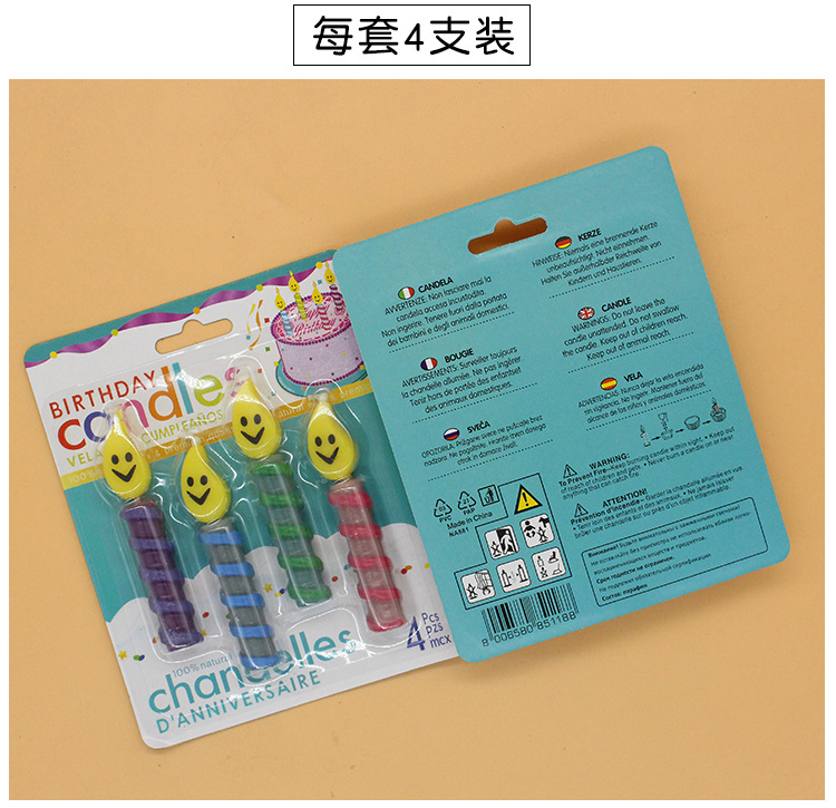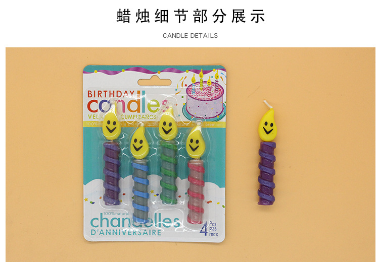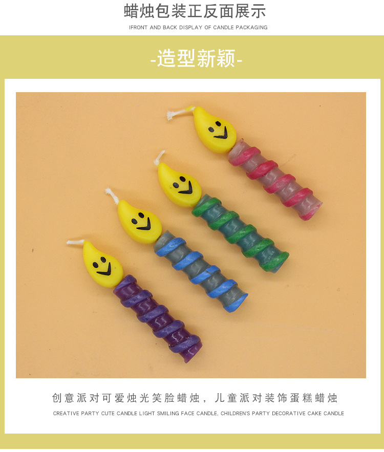 wholesale new ins candle party smiley face candle colorful thread smiley face creative cartoon baking decoration candle