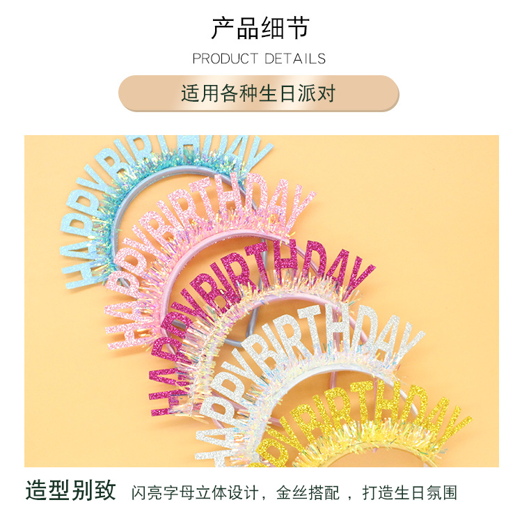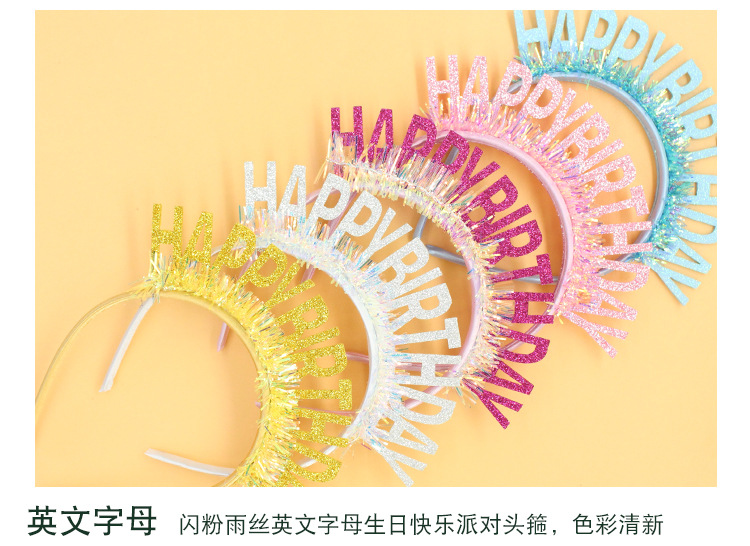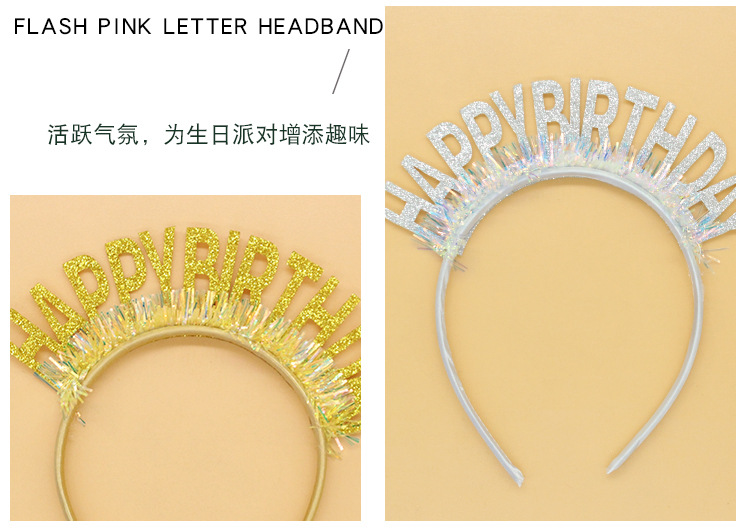 new glitter gold silk birthday headband english letters happy birthday headband party atmosphere decorative hat