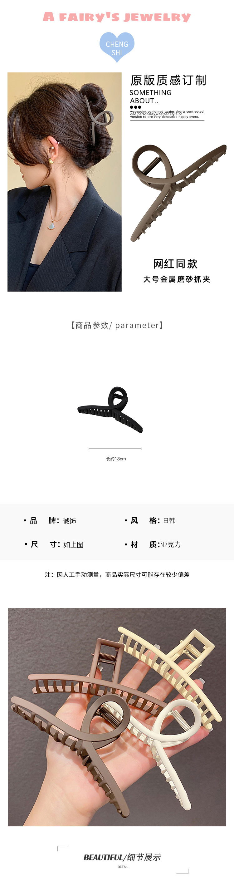 2# Milk Tea Color Bow Claw Clip Grip