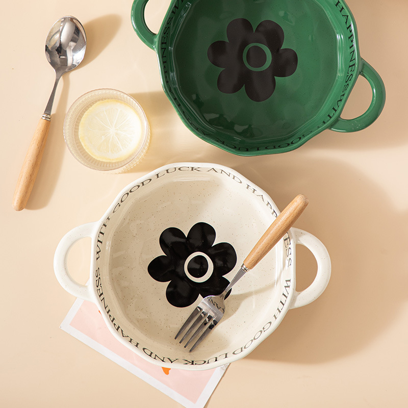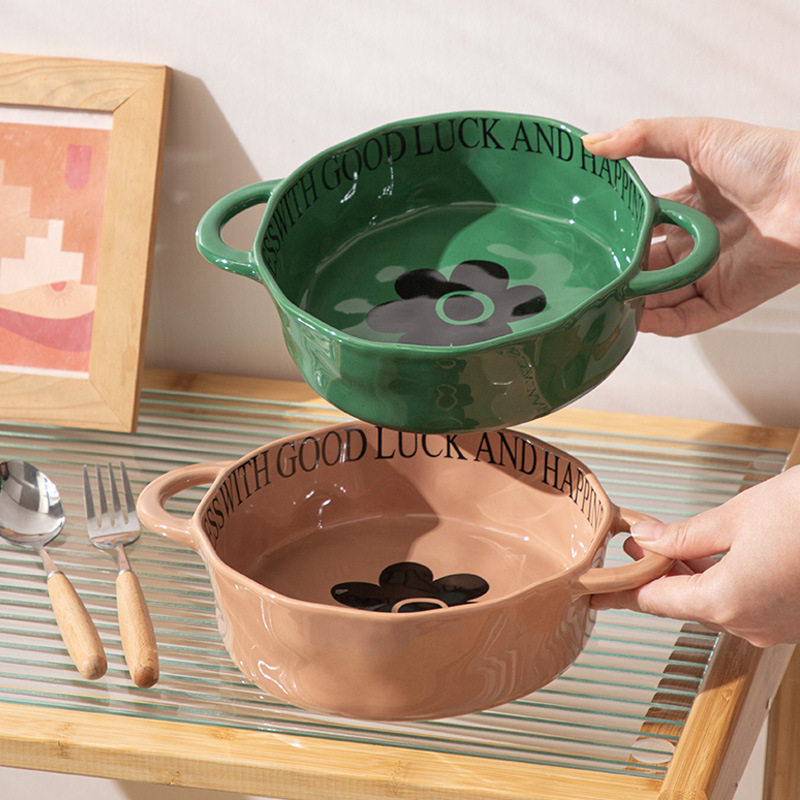nordic ceramic double-ear bowl hotel supplies snail rice noodles boiled fish soup noodles ramen bowl rice risotto bowl