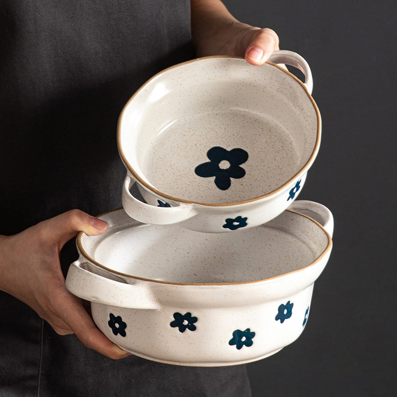 japanese style fresh pottery clay bowl plate household ceramic tableware western food steak plate salad bowl soup bowl