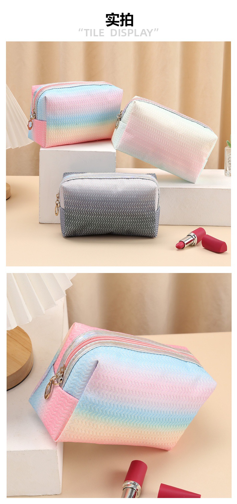 cross-border colorful cosmetic bag pvc gradient color sweet portable storage bag travel wash clutch small square bag