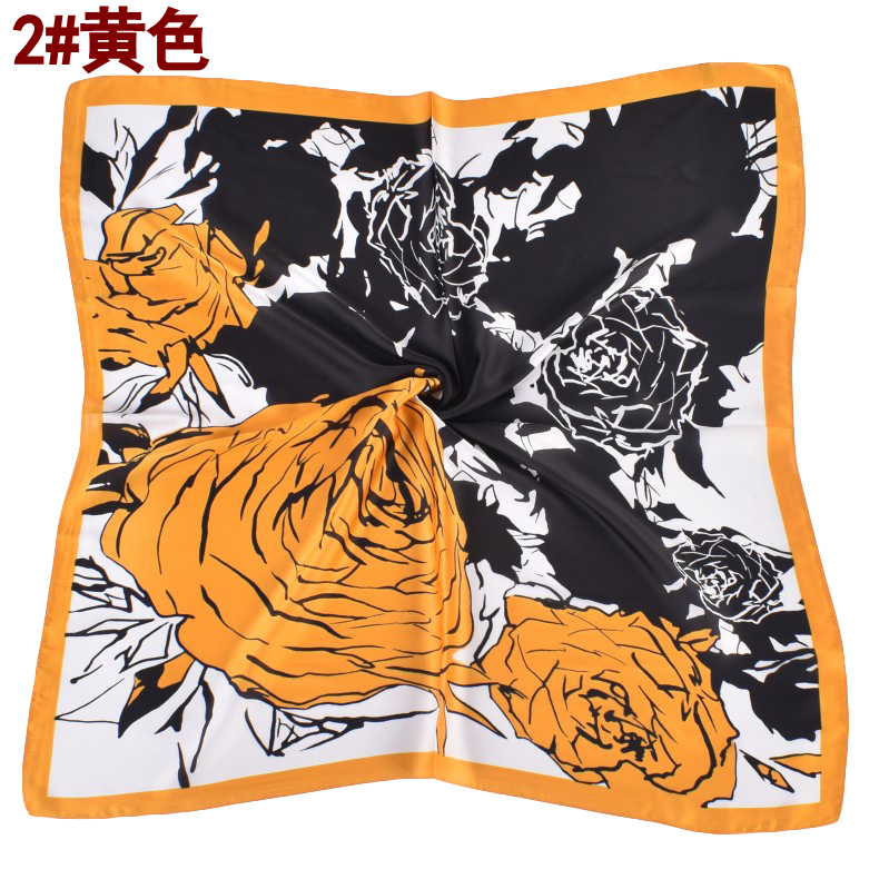 Korean Style Fashion New Rose Flower Silk Towel 70*70 Spot Supply Fashion Decoration Cross-Border Supply