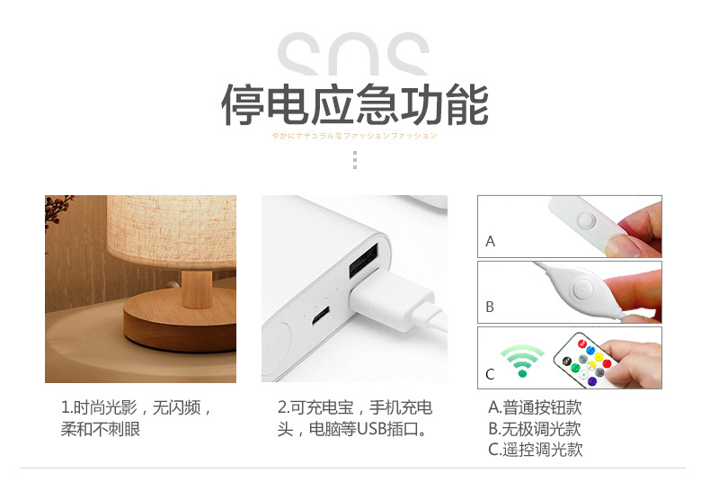 table lamp usb [wheat lampshade] led light source-remote control switch: 3w