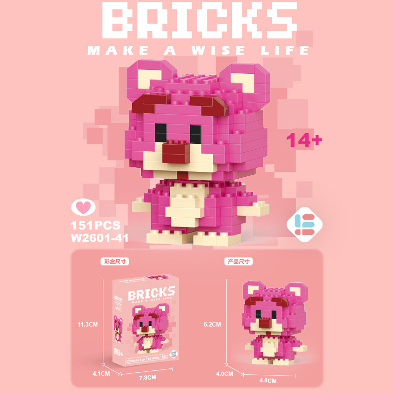 w2302 strawberry bear holding strawberry 592pcs [color box package]]