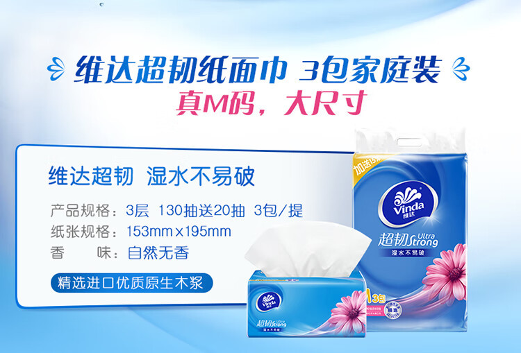 [size m paper extraction] super tough 3 layers 150 drawers 3 packs