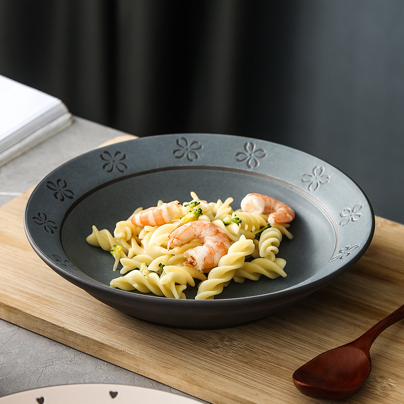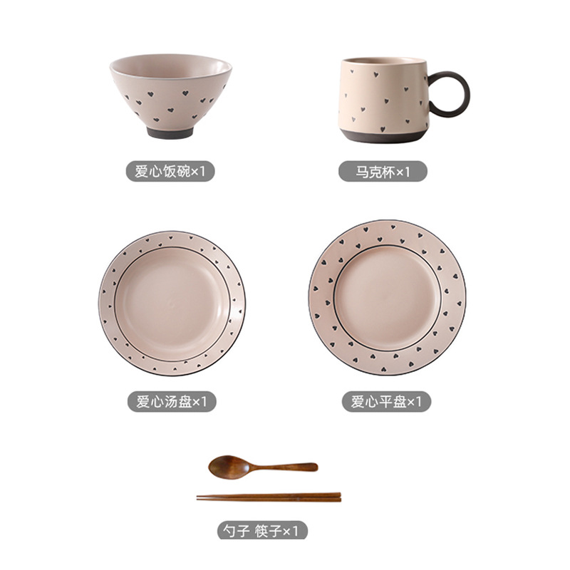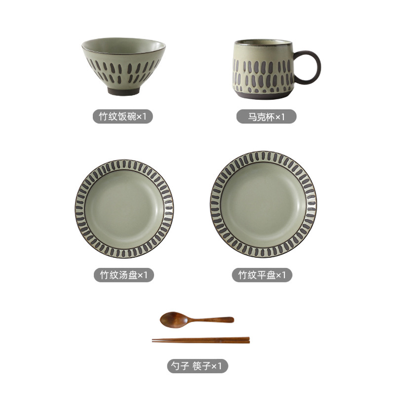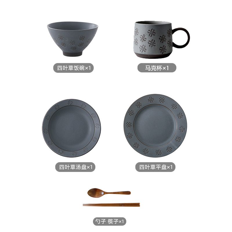 retro stoneware hand-painted plate black soil hotel supplies one person bowl dish suit four-piece set bowl