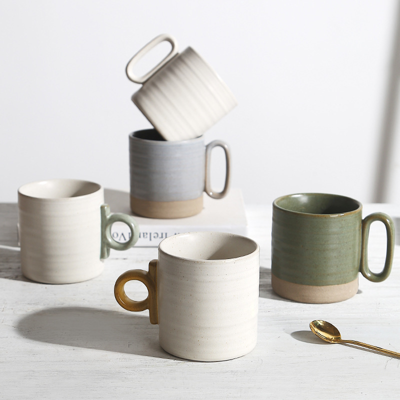 japanese retro mug stoneware cup suit striped water cup style couple coffee mug