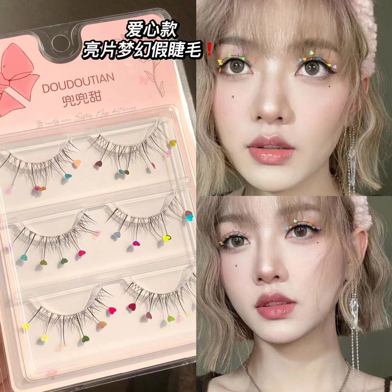 ddt42 sequined false eyelashes 3 pairs-love style