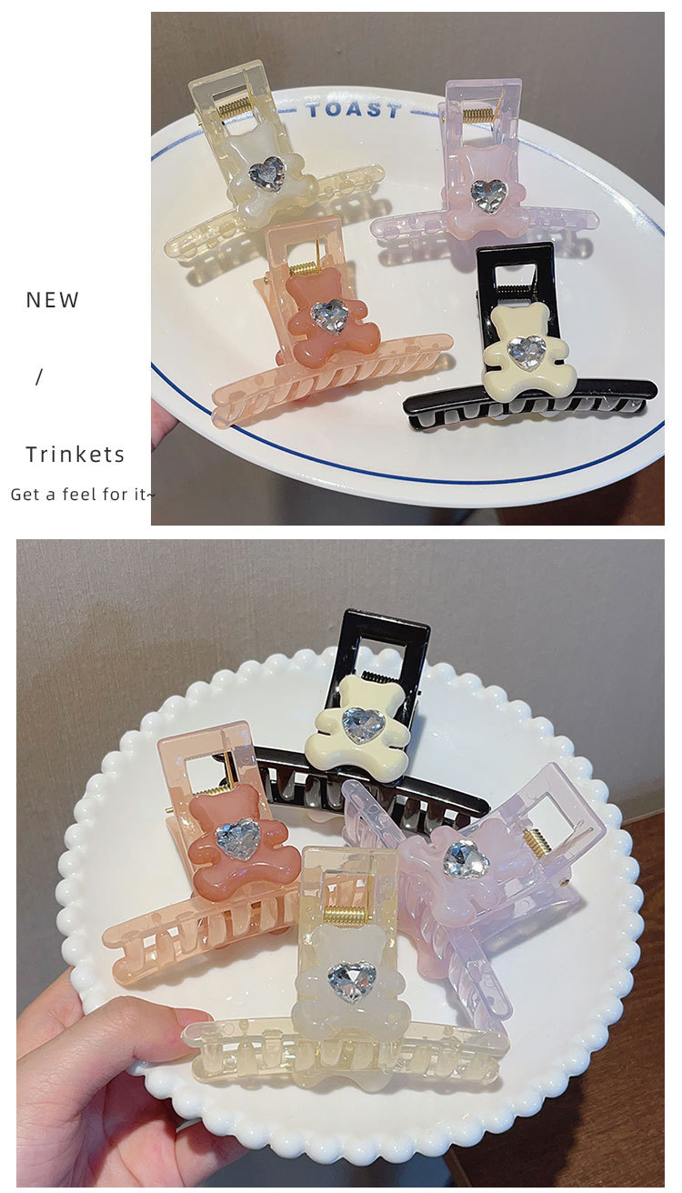transparent beige rhinestone bear grip