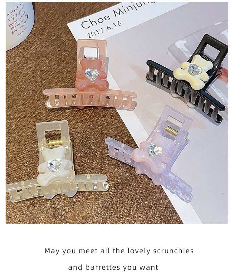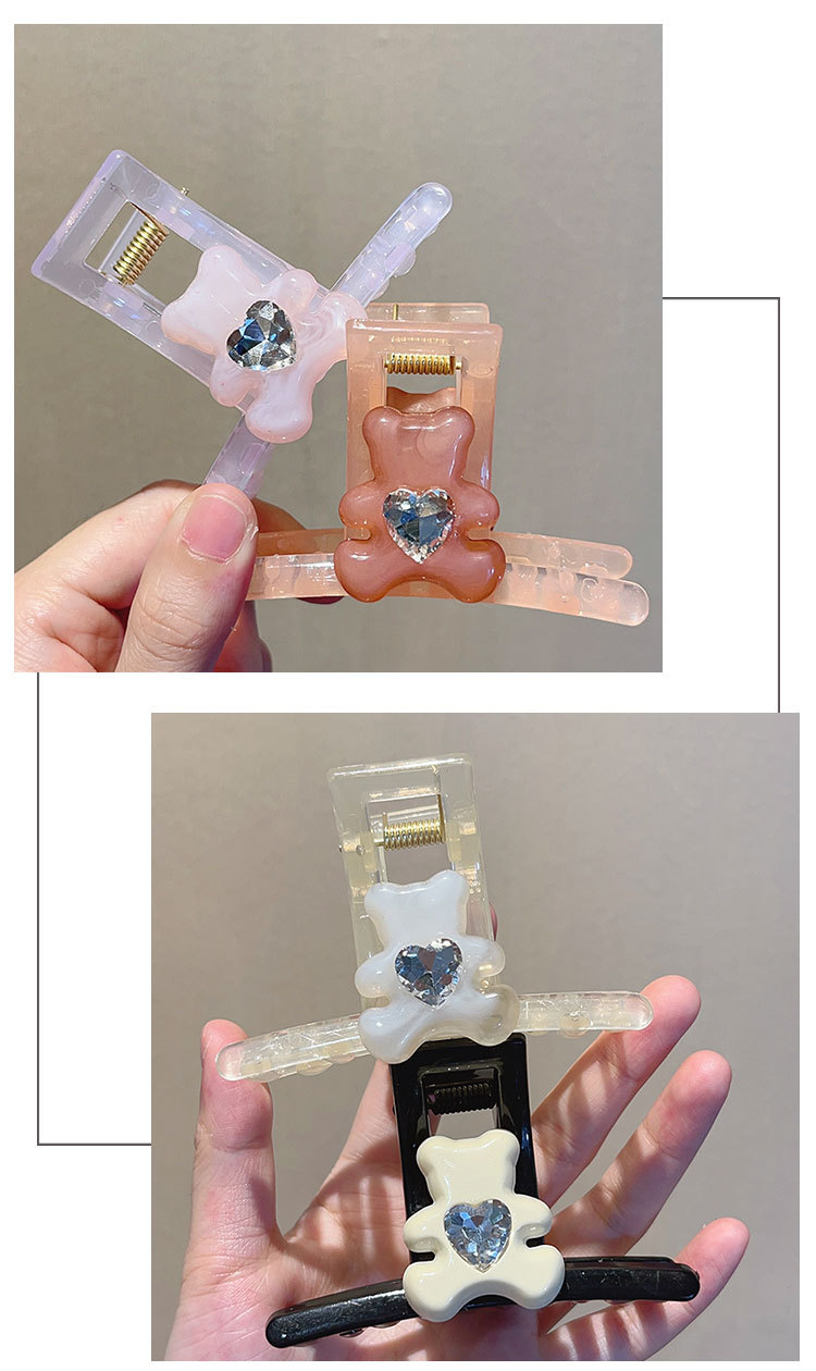 transparent pink rhinestone bear grip
