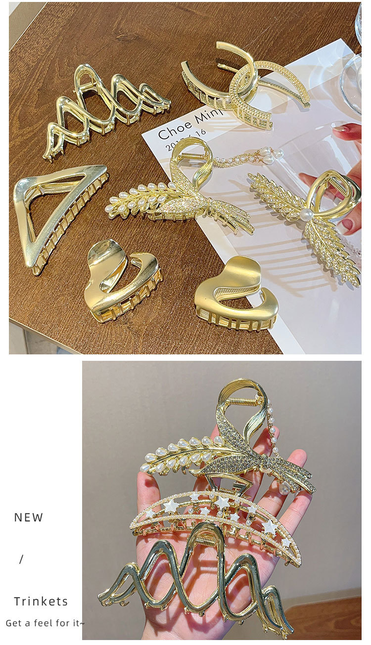 1# gold double c rhinestone hair claws