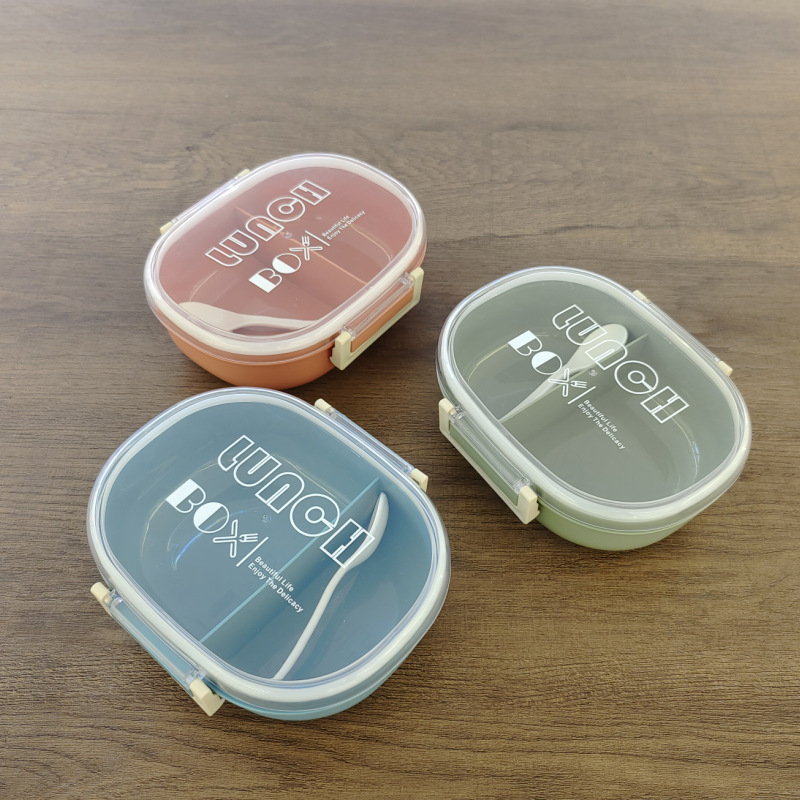 food grade 2-compartment plastic lunch box silicone sealed crisper with spoon