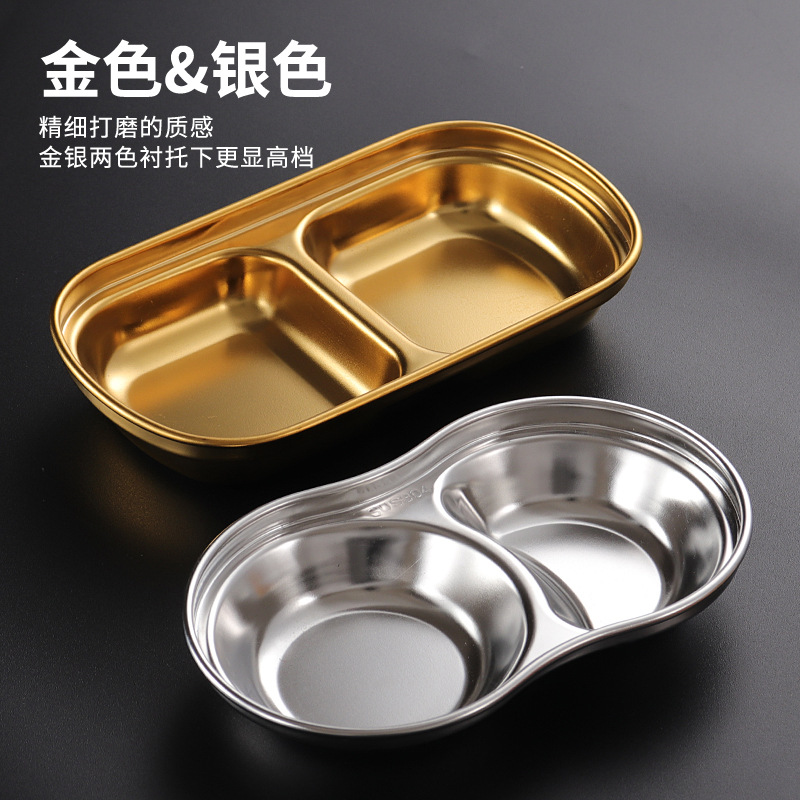 304 round grid dish gold: thickened three grids