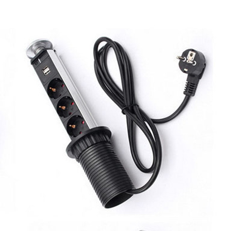 The pull-up mechanism can be hidden, and it can be installed on office desks and furniture. It can be customized with or without a USB port and a switch.