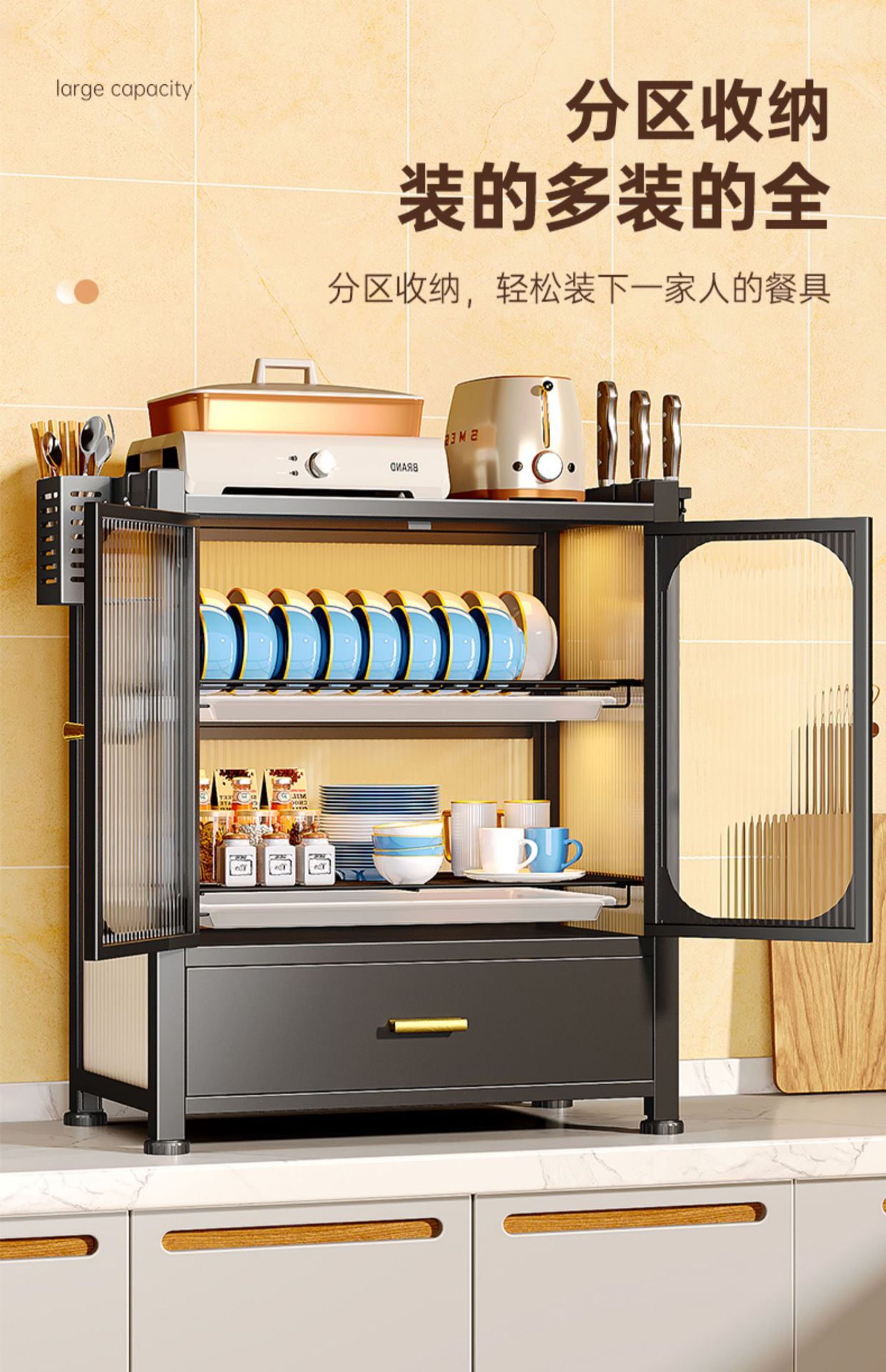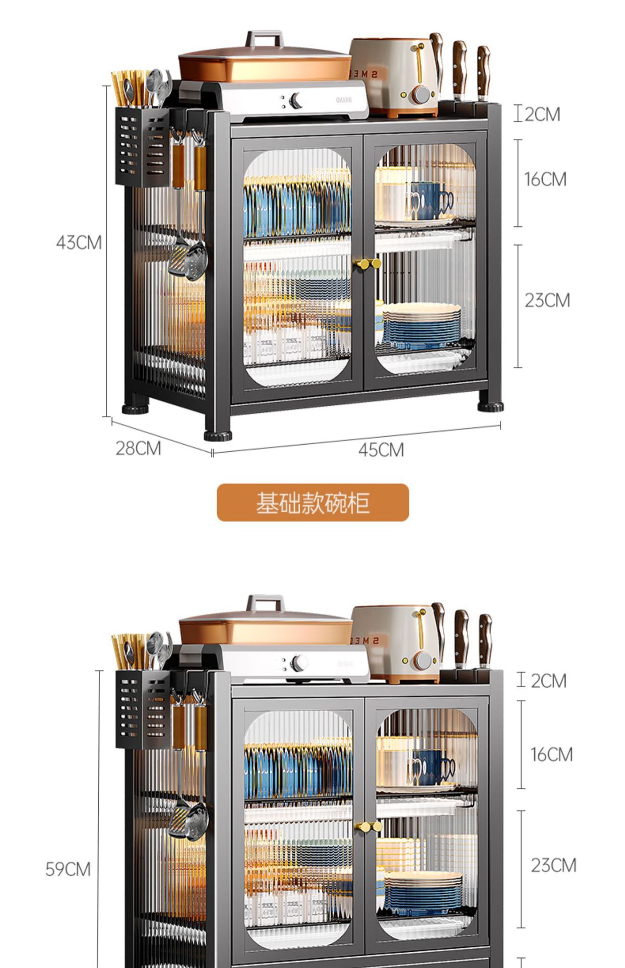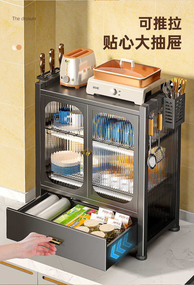 double-layer dustproof cupboard [full set] black
