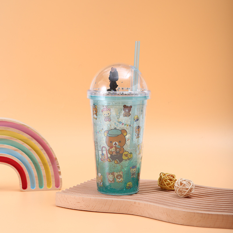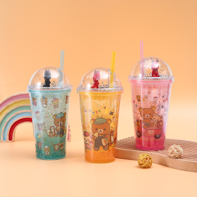 new creative crushed ice cup ice cup bear double-layer cup with straw men and women student portable summer cute ice cup plastic cup