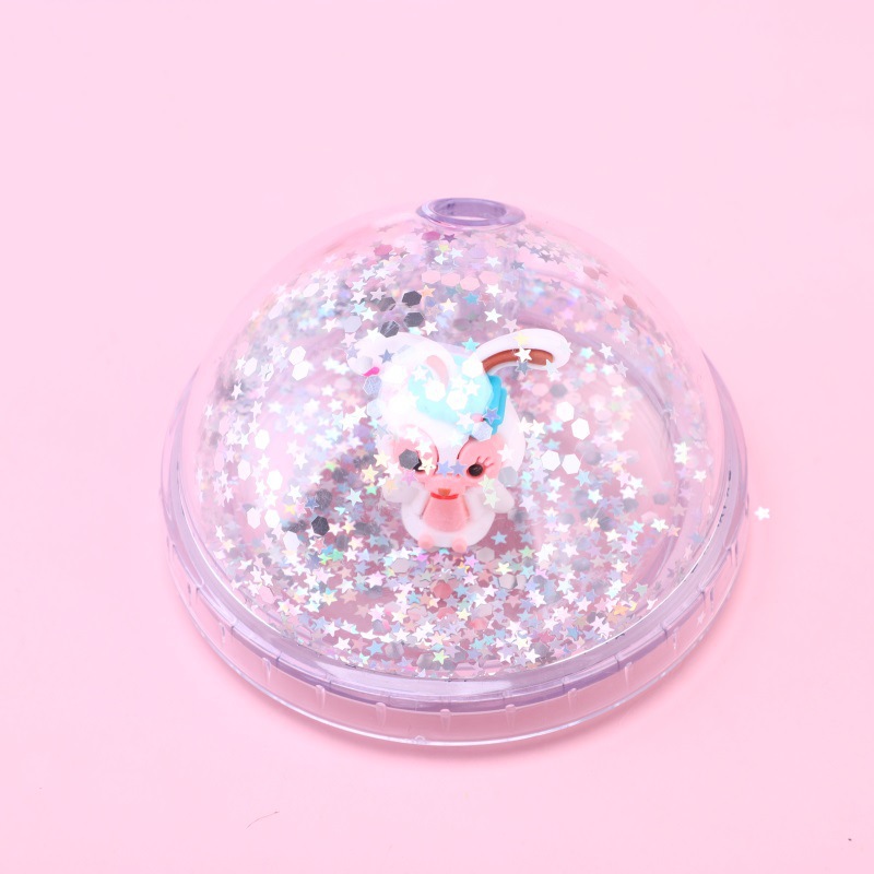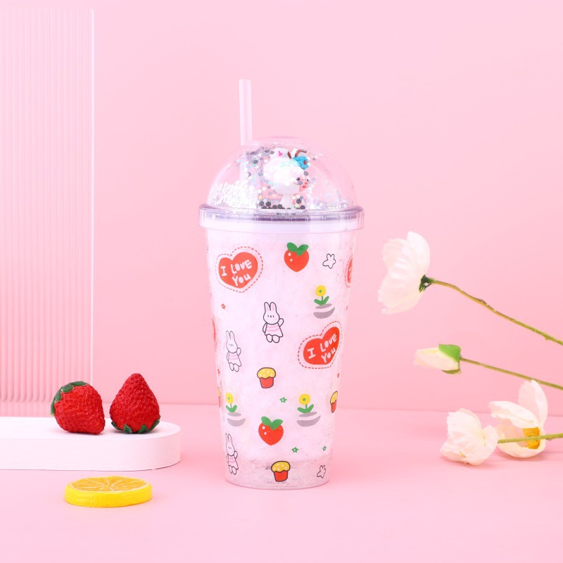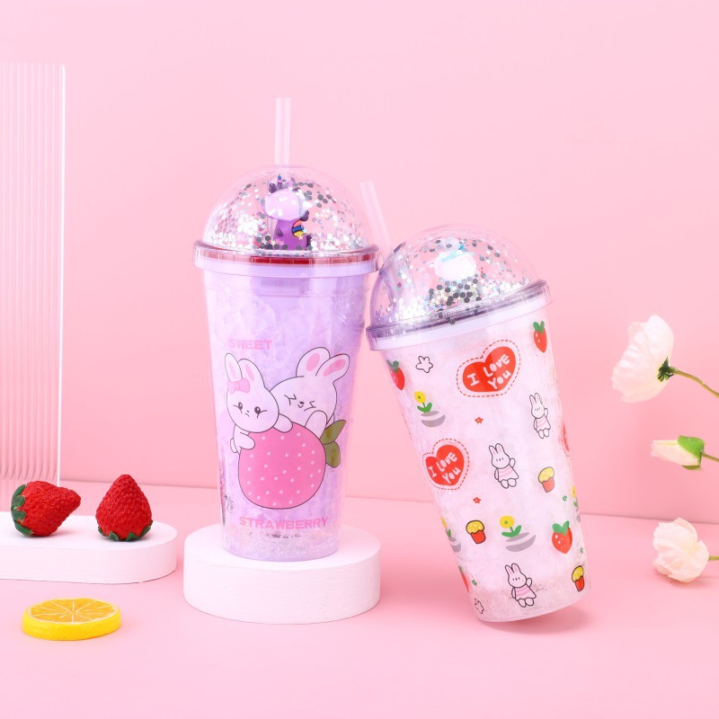 cartoon rabbit bear plastic cup student creativity portable handy cup sealed summer micro landscape cup with straw wholesale