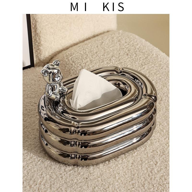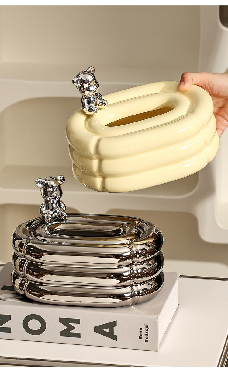 bear donut tissue box-silver