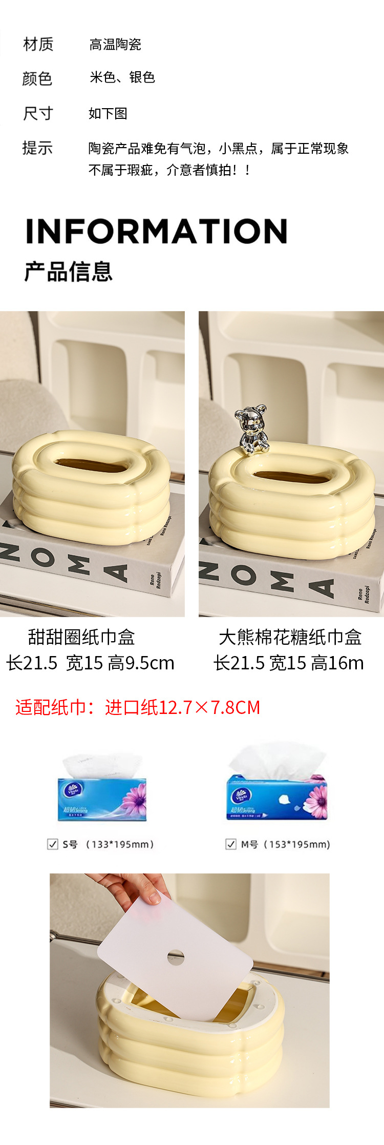 big bear donut tissue box-beige
